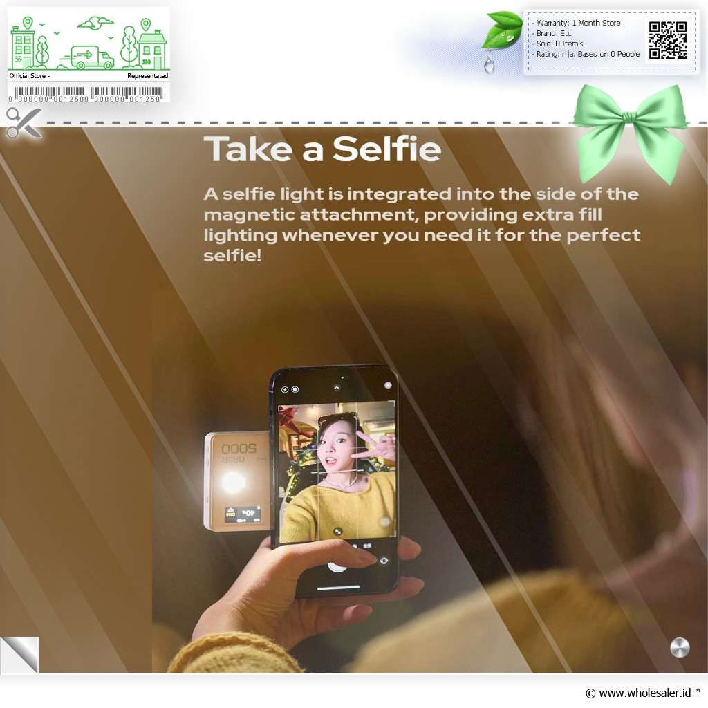 Power Bank Terintegrasi Selain berfungsi sebagai lampu fill light, perangkat ini juga merupakan power bank portabel dengan fitur magnetik wireless. Jadi jika daya baterai smartphone Anda habis, Anda hanya perlu menggunakan 1 perangkat saja untuk mengisi daya sekaligus mendapatkan pencahayaan sempurna. |