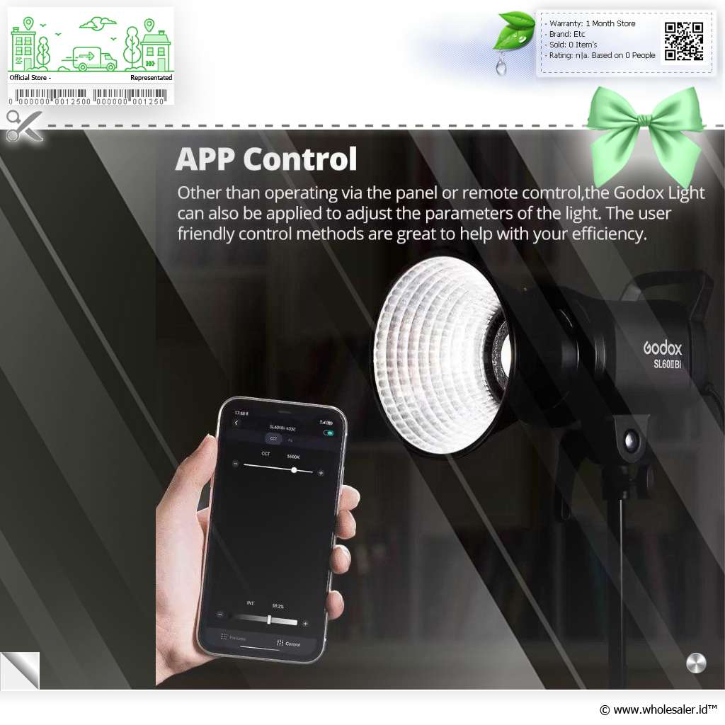 Maksimalkan hasil foto atau video menggunakan lampu studio dari Godox. Ditenagai oleh chip LED berkualitas tinggi dengan output 75 W, lampu ini menghadirkan cahaya yang konsisten, natural, dan fleksibel untuk berbagai kebutuhan fotografi maupun videografi. Dengan temperatur warna 2800-6500 K, pengaturan kecerahan, bowens mount, 11 efek pencahayaan, dan pengaturan menggunakan aplikasi atau remot, lampu ini adalah solusi ideal bagi fotografer, videografer, dan content creator yang membutuhkan pencahayaan andal dengan hasil maksimal di mana saja.