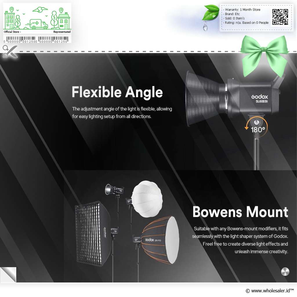 Kecocokan Aksesori Luas Lampu studio Godox menggunakan bowens mount, merupakan standar universal yang digunakan oleh banyak merek, sehingga kamu bisa dengan mudah memasang softbox, reflektor, payung, beauty dish, atau modifier lainnya tanpa perlu adaptor tambahan. |