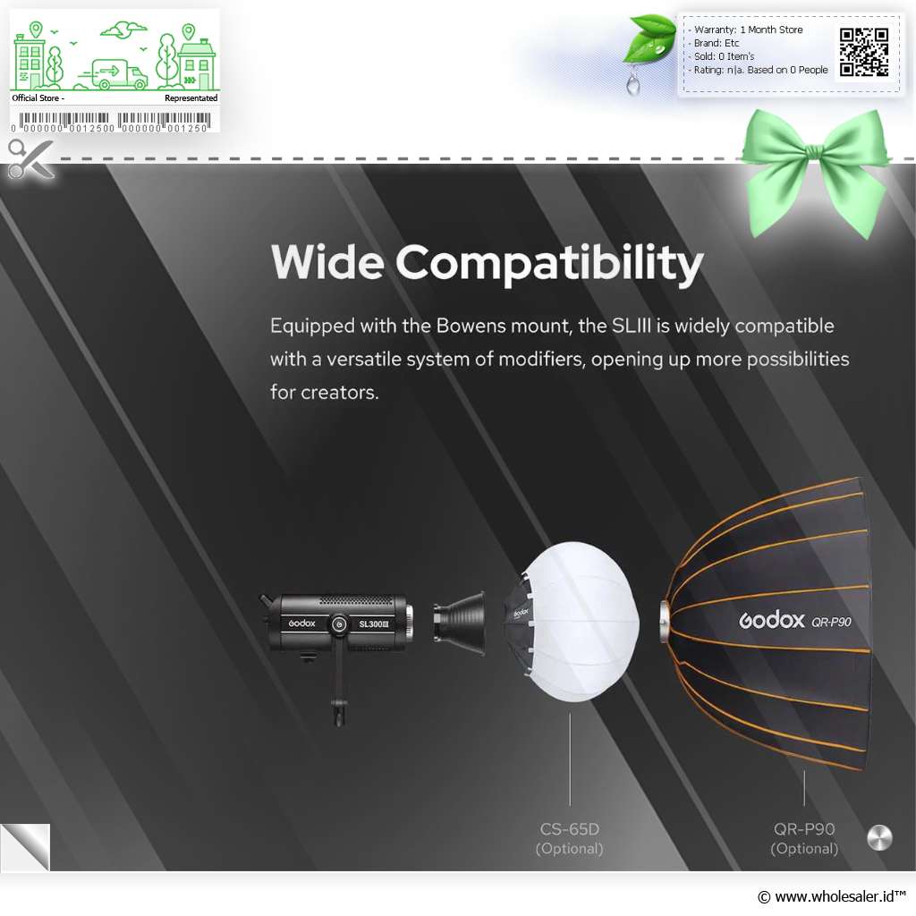 Kecocokan Aksesori Luas Lampu studio Godox menggunakan bowens mount, merupakan standar universal yang digunakan oleh banyak merek, sehingga kamu bisa dengan mudah memasang softbox, reflektor, payung, beauty dish, atau modifier lainnya tanpa perlu adaptor tambahan. Sistem kuncinya juga kuat dan stabil, membuat aksesori tidak mudah lepas saat digunakan. |