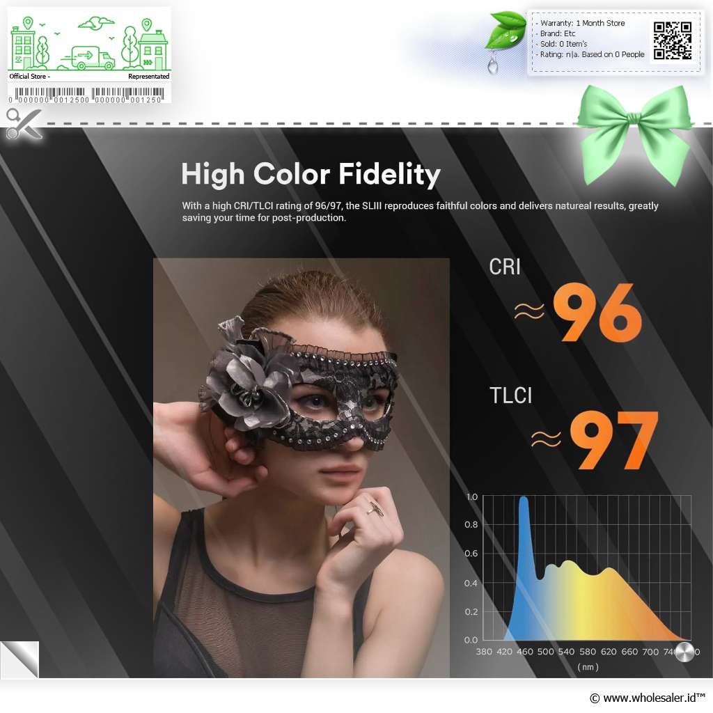 Reproduksi Warna Akurat Dengan CRI 96 dan TLCI 97, setiap warna terlihat alami dan realistis, menampilkan hasil yang identik dengan pencahayaan alami. |