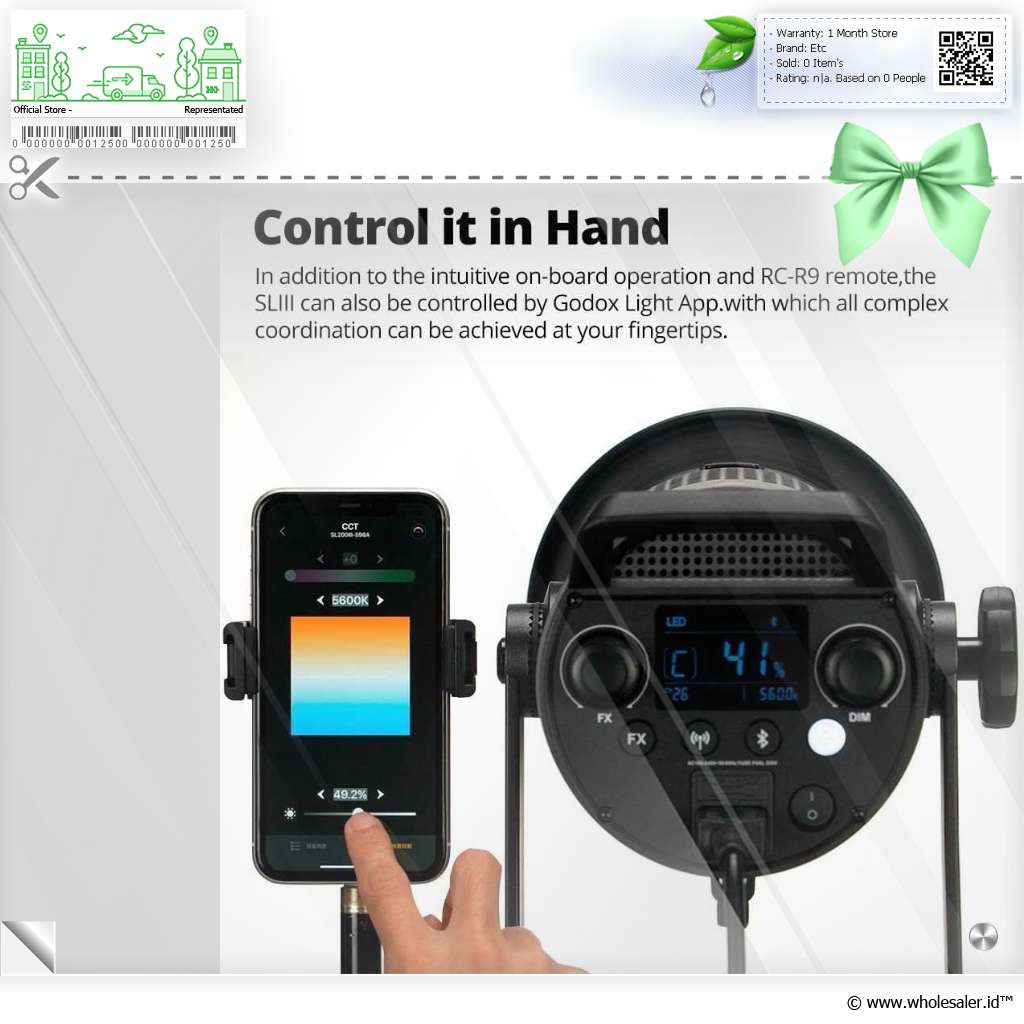 - 1 x Godox Lampu Studio LED Fill Light 2.4G Wireless Bowens 5600K 300W - SL300III