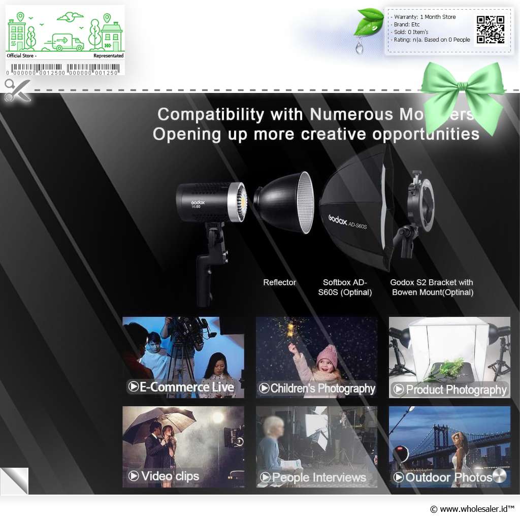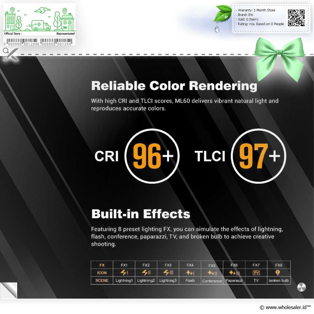 Informasi Produk Godox Lampu Studio LED Fill Light Handheld Portable 8 Mode 5600K 60W - ML60