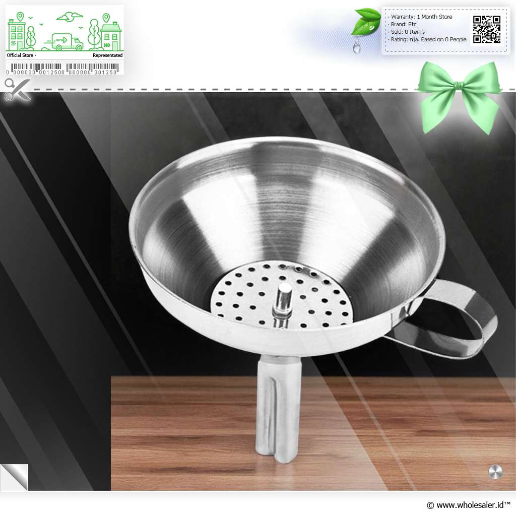 Corong ini berfungsi untuk memasukkan minyak dan zat cair lainnya ke dalam wadah atau memindahkannya ke gelas. Didesain dengan presisi serta kualitas tinggi, corong ini menjadi pilihan terbaik untuk menghindari tumpahan dan pemborosan saat menuangkan minyak atau cairan lainnya. Alat ini wajib dimiliki untuk memudahkan pekerjaan dapur Anda.