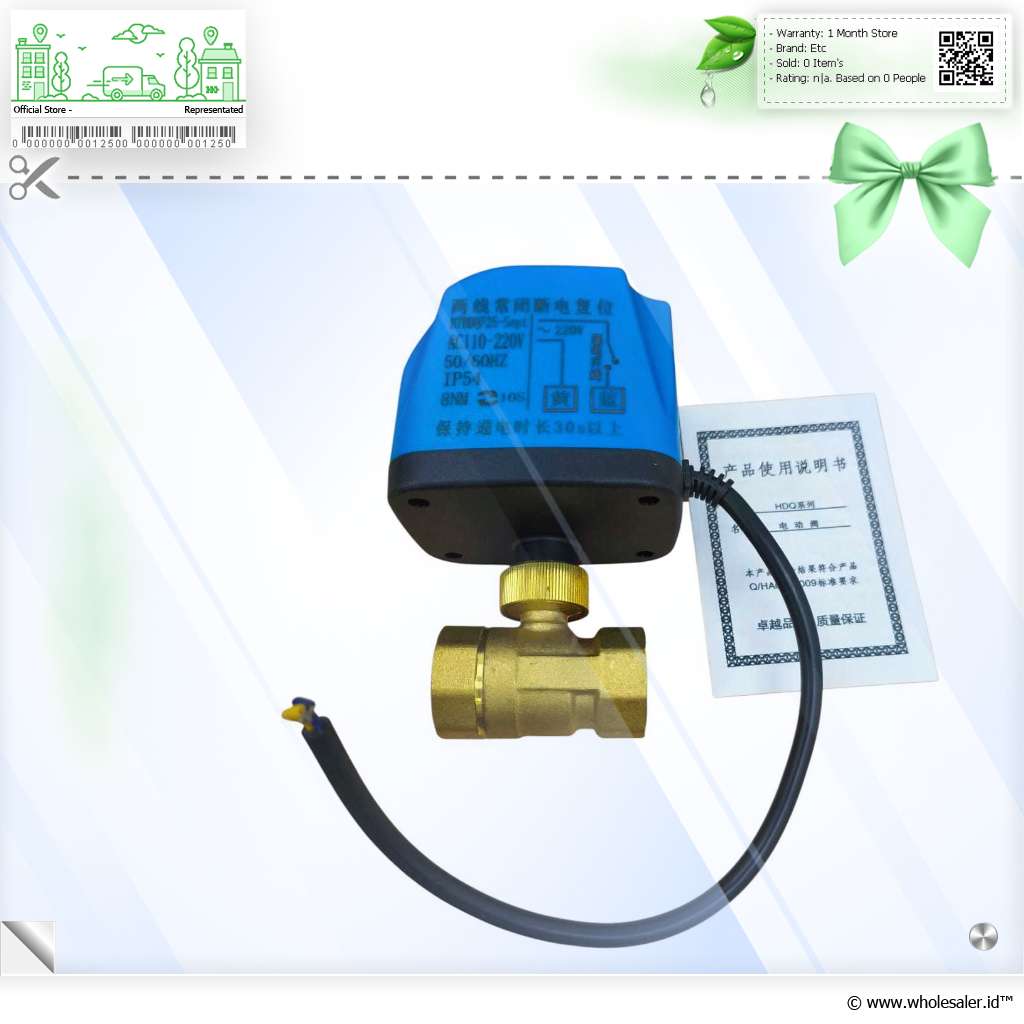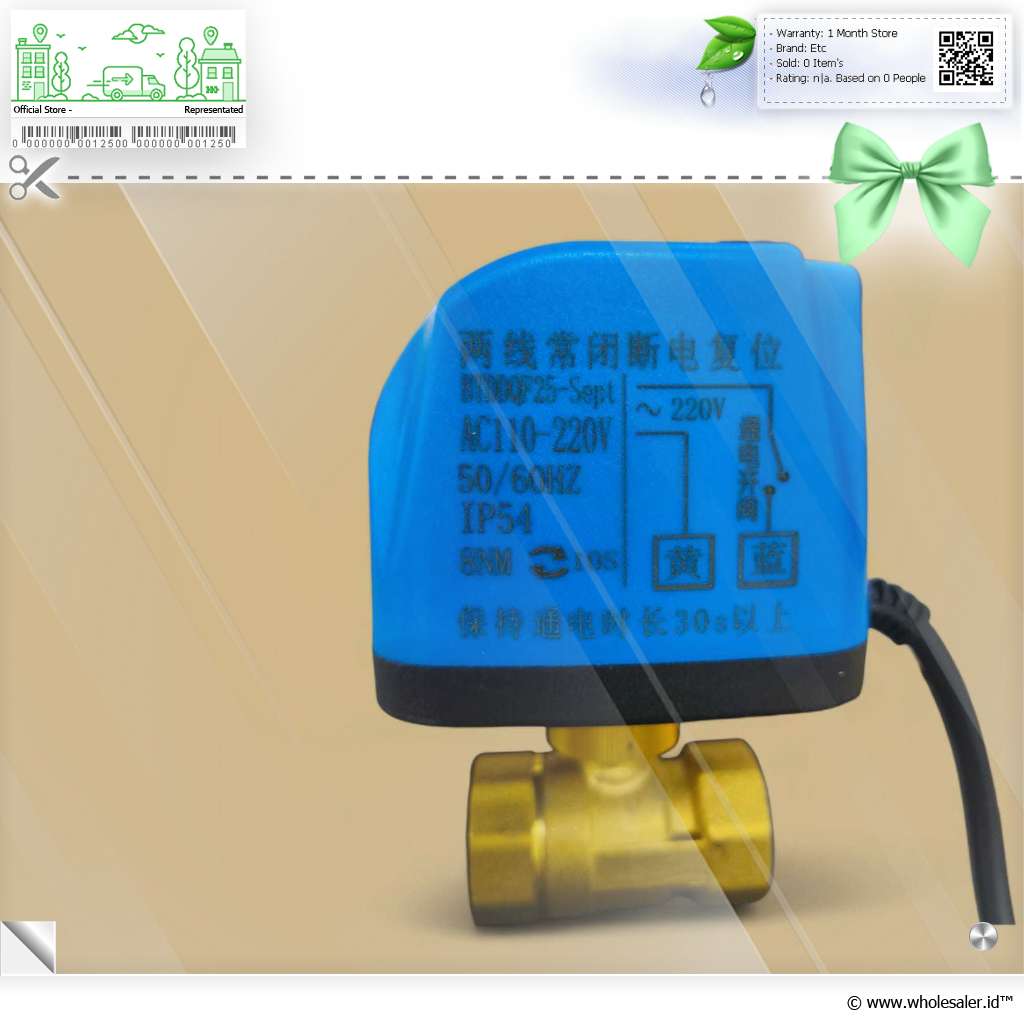 | Dimensi | : | Solenoid Valve 8 x 6 x 12.2 cm Panjang Kabel Sekitar 26 cm Ukuran Pipa 3/4 Inch |