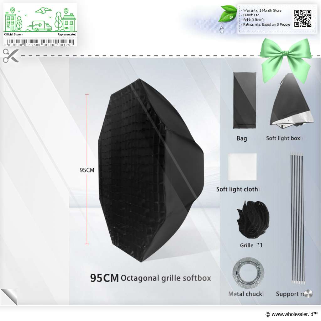 | Material | : | Support Rod Baja Metal Chuck Bowens Aluminium Alloy dan Baja Softbox Nilon dan Aluminium Reflektif Kain Difusi Oxford |