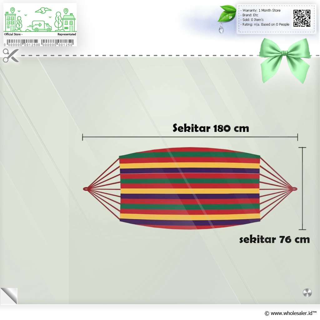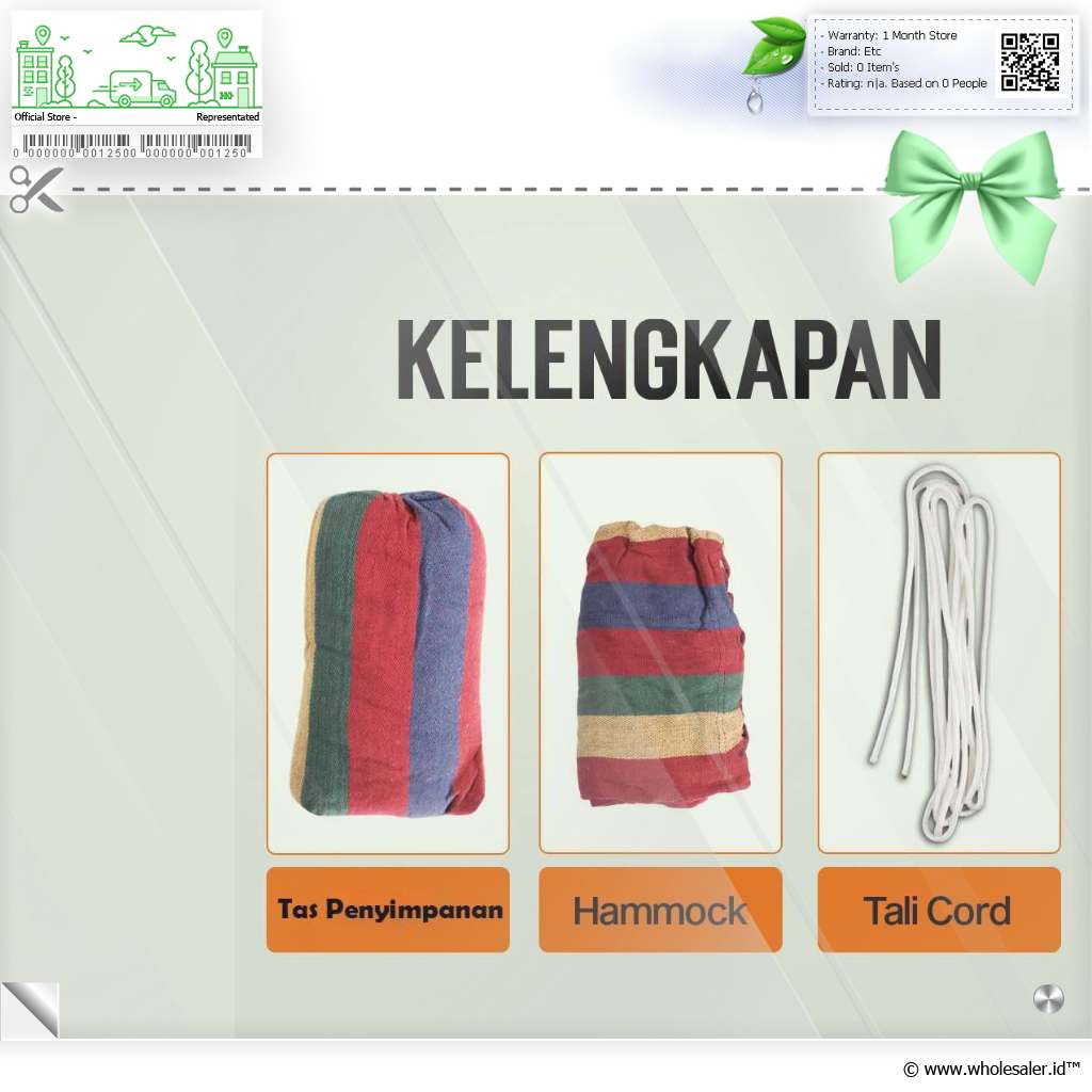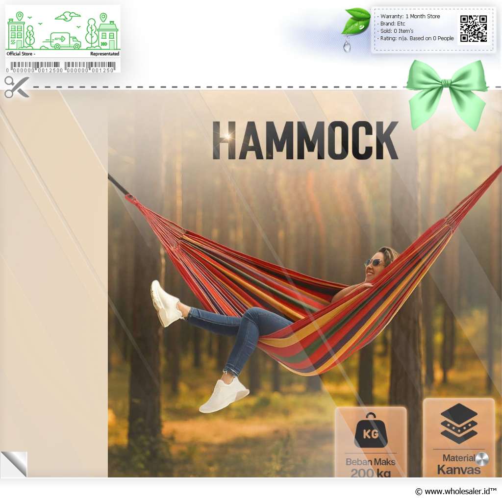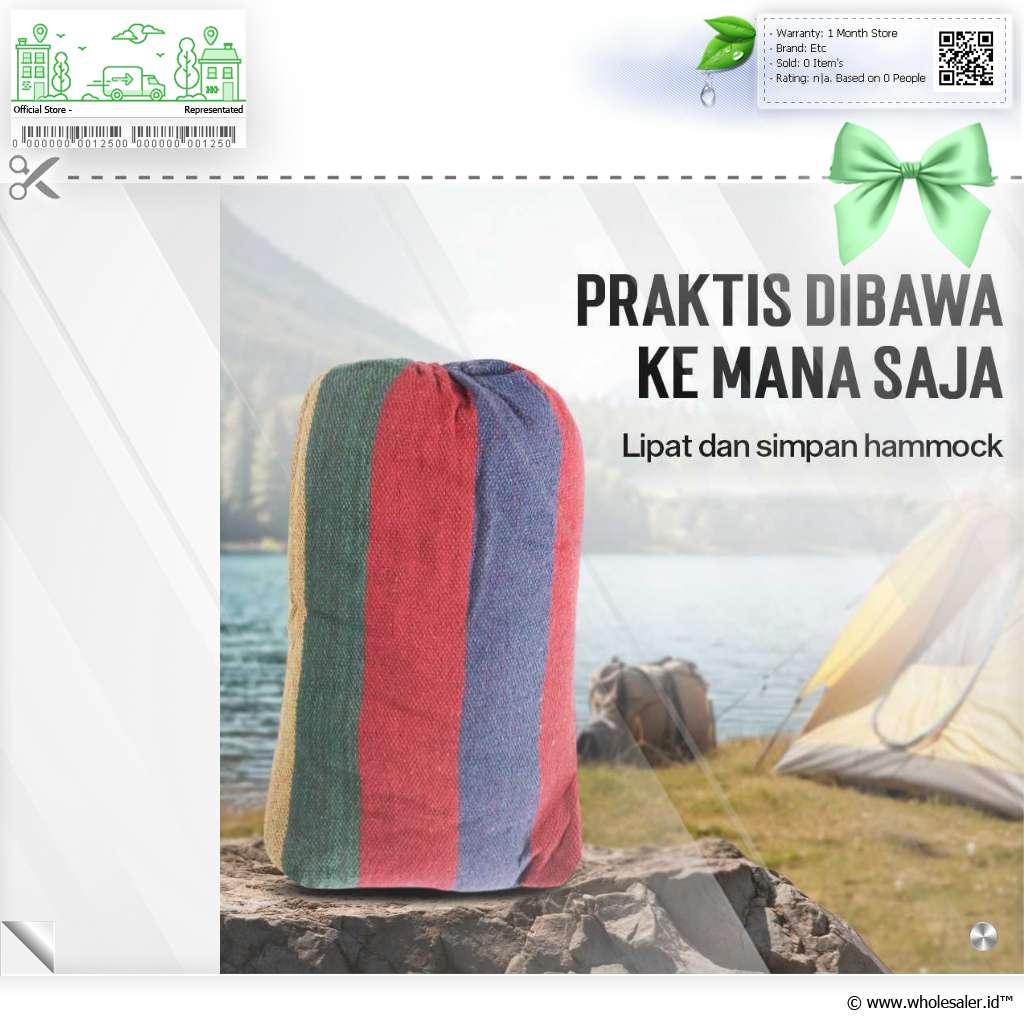 | Dimensi | : | Hammock Sekitar 180 x 76 cm Panjang Tali Cord Sekitar 2 M |