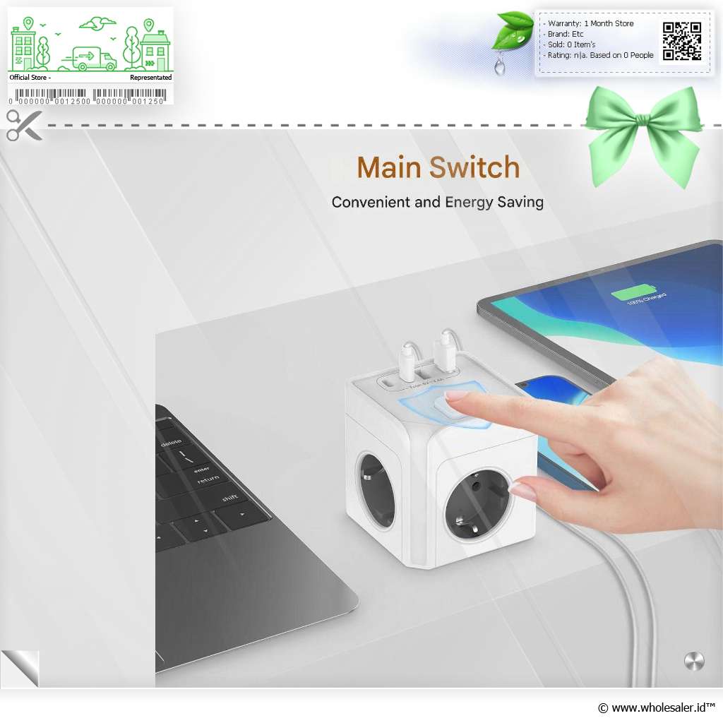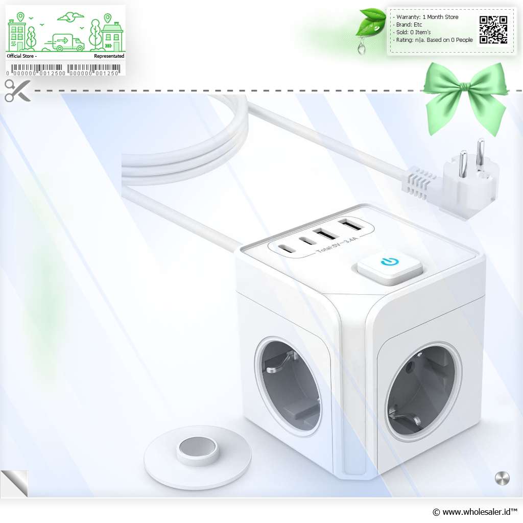 Informasi Produk HITREND Stop Kontak 7in1 USB Type C Port Magnetic Cube Wall Socket - HT-71