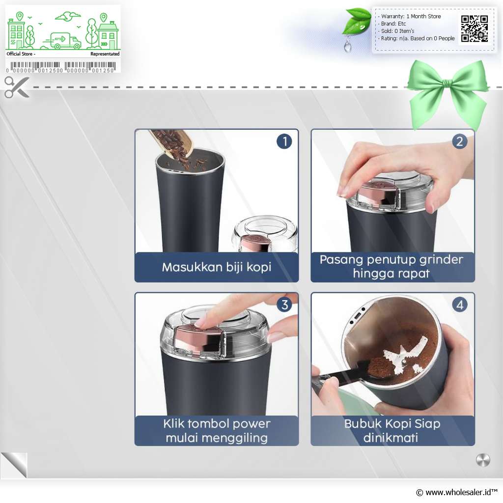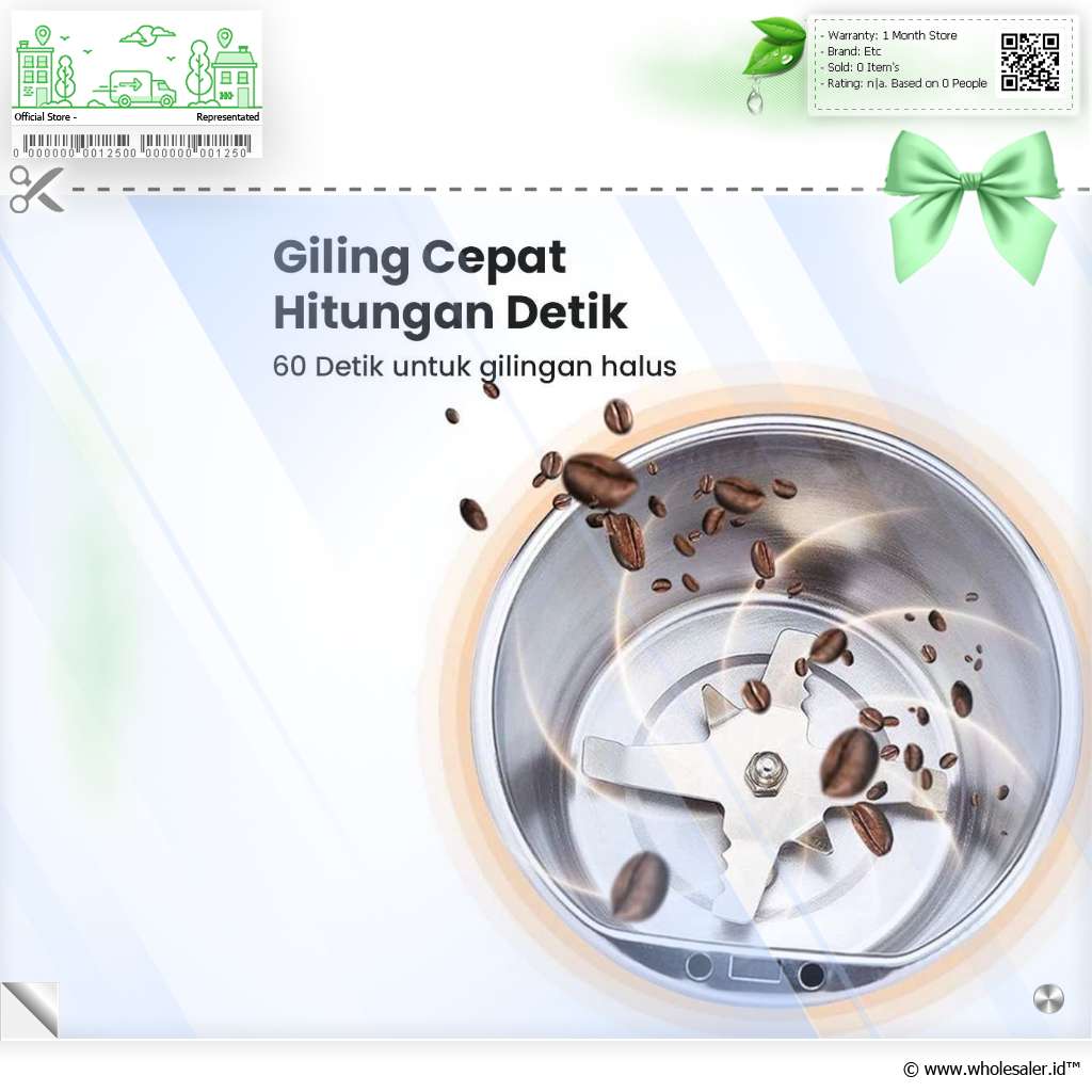 Anda bisa menggiling biji kopi dengan mudah menggunakan penggiling biji kopi dari HOMEFISH. Dibekali dengan pisau pisau tajam stainless steel 304, biji kopi akan sangat halus dalam durasi sangat singkat. Bisa juga digunakan untuk menggiling rempah, biji-bijian, atau bumbu dapur lainnya.