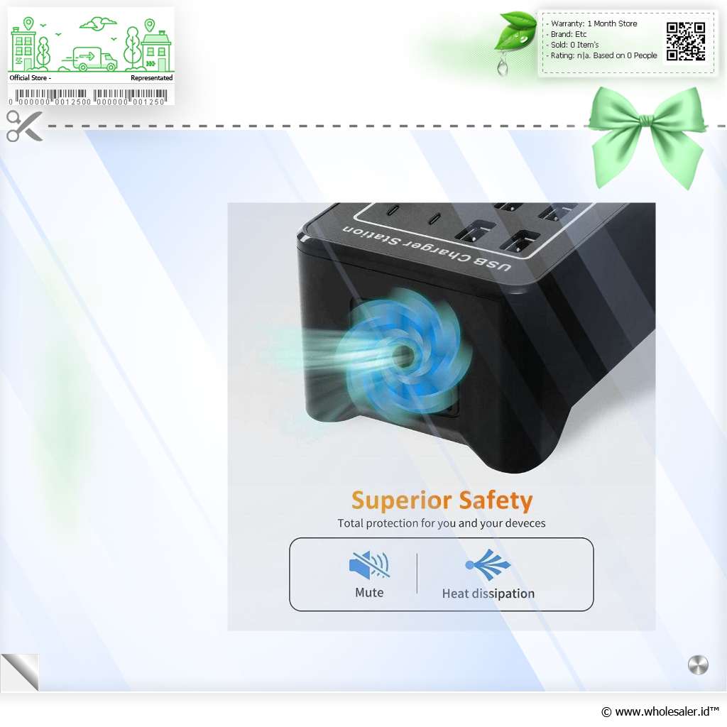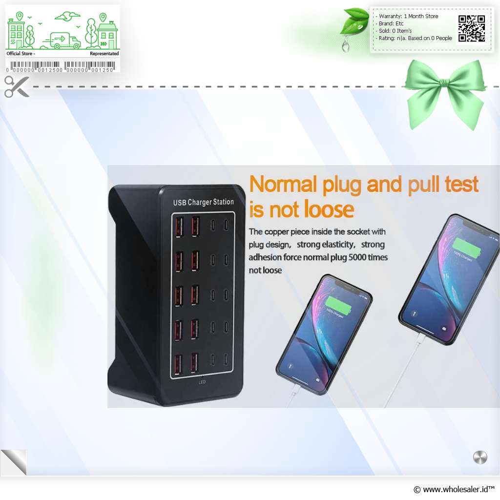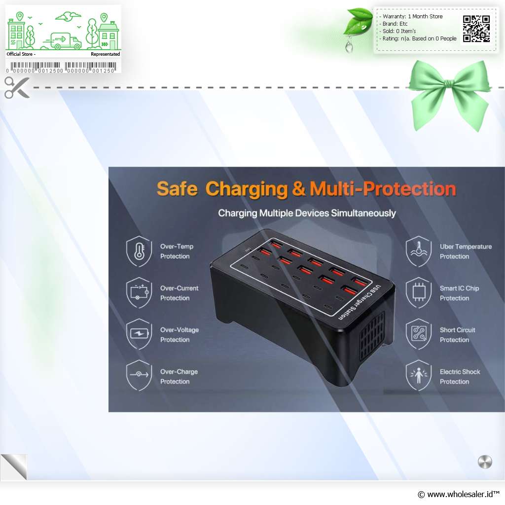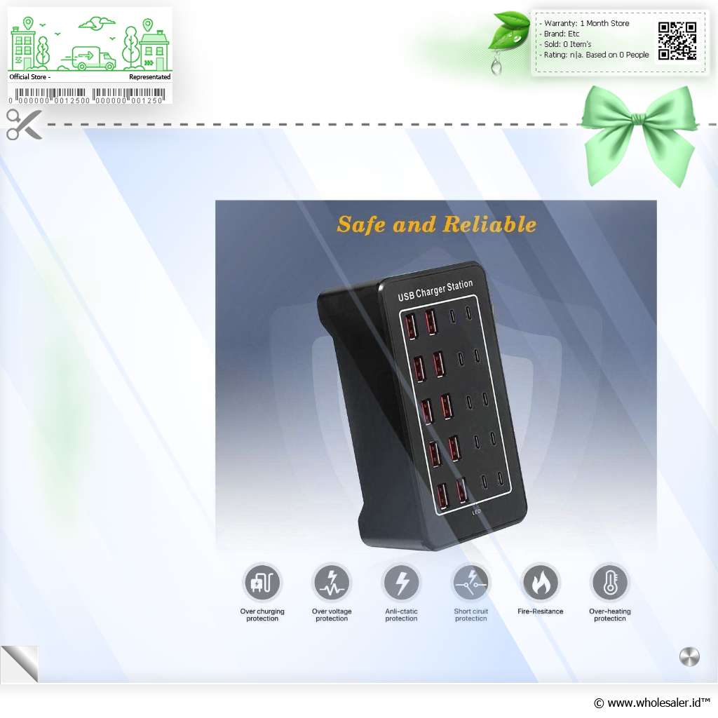 Charger USB ini dilengkapi dengan 10 port USB dan 10 port Type C sehingga dapat mengisi 20 perangkat sekaligus. Dock atau charging station ini mampu menghasilkan output total hingga 20 A dengan batasan 2.4 A di setiap port USB. Bagi Anda yang memiliki banyak perangkat elektronik dengan pengisian daya USB, maka wajib menggunakan alat ini.
