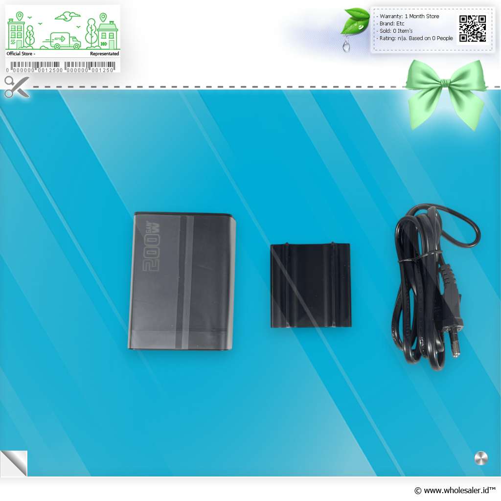 Daya / Power | : | Total Output 200 W Output USB Type C 15 W - 100 W Output USB A 15 W - 18 W |