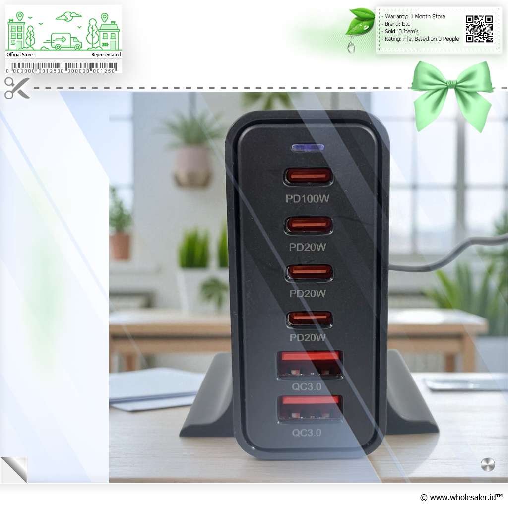 Daya Besar, Isi Daya Cepat Setiap port pada charger ini mampu menghantarkan daya 15 W - 100 W, sehingga total dayanya mencapai 200 W. Tak ketinggalan teknologi fast charging PD dan QC yang membuat daya baterai terisi penuh hanya dalam sekejap. |