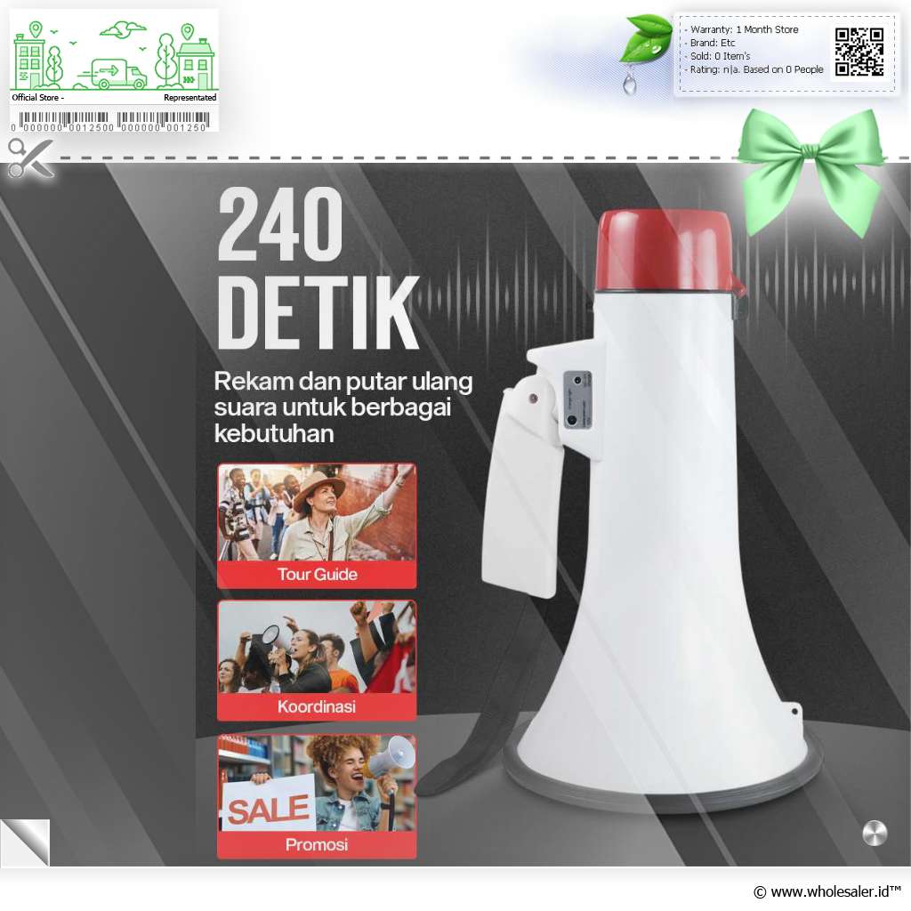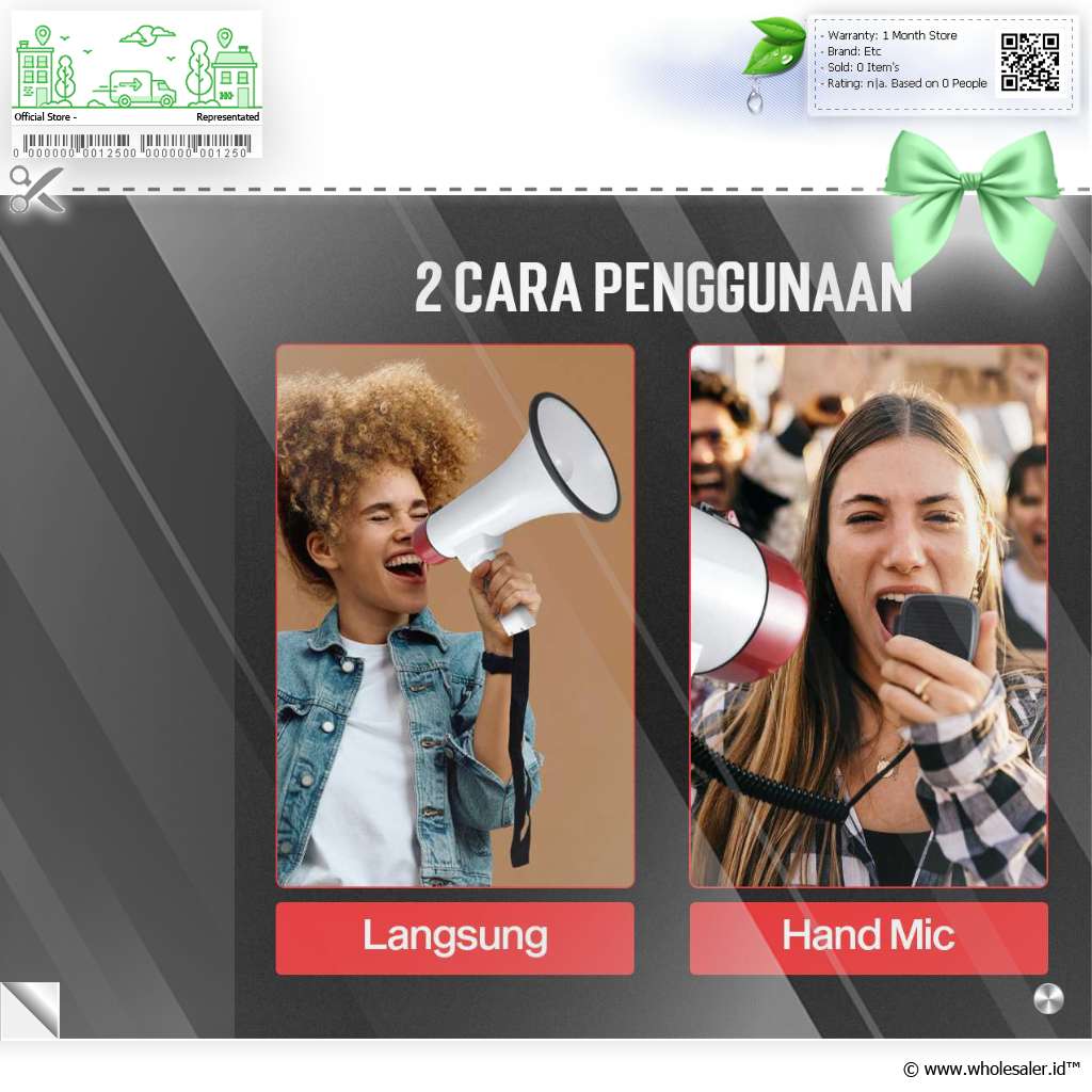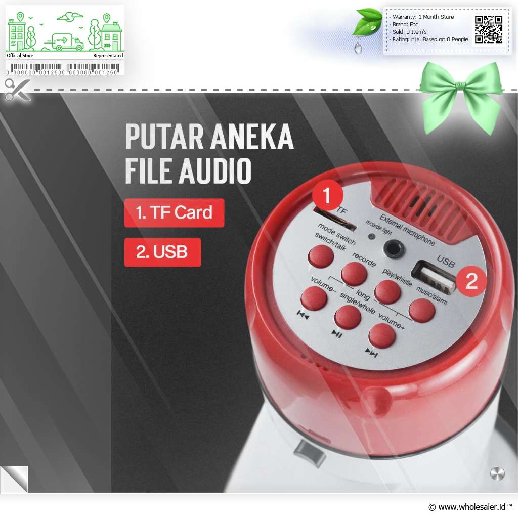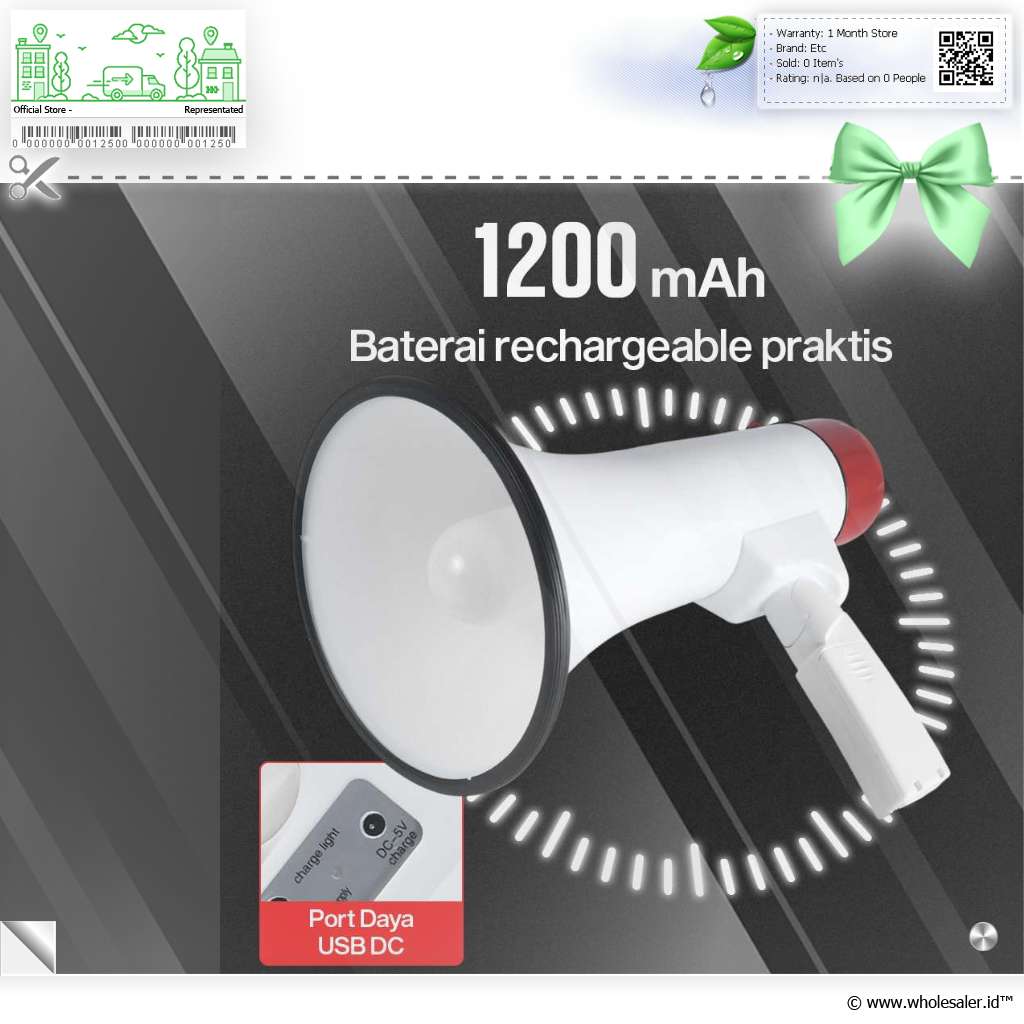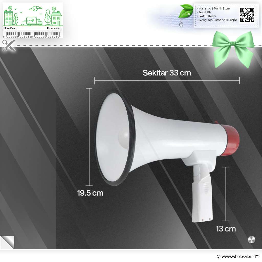 Dimensi | : | Panjang Sekitar 33 cm Diameter Corong Megaphone 19.5 cm Panjang Handle 13 cm Panjang USB DC 50 cm |