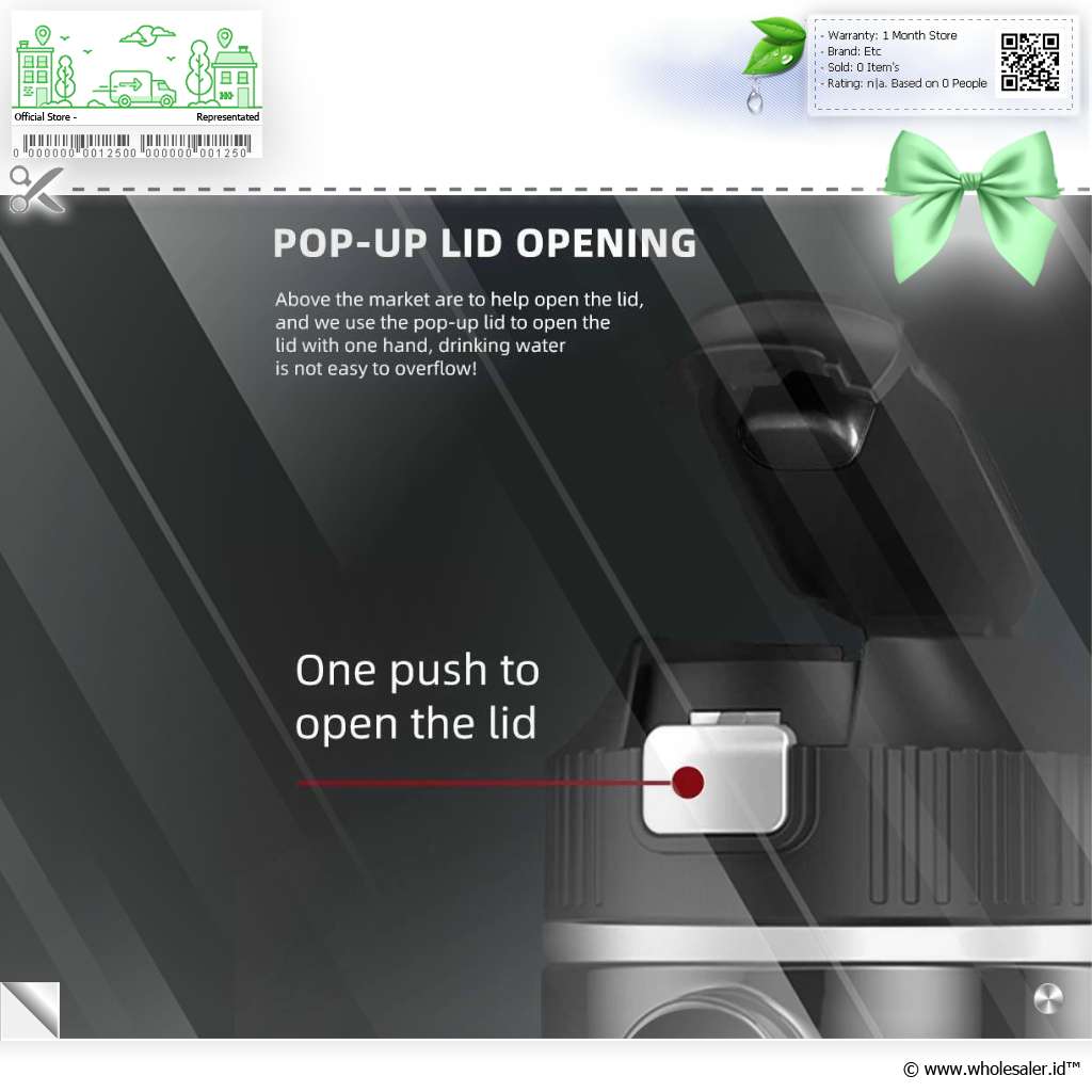 | Material Berkualitas Tinggi Terbuat dari stainless steel 304 yang tahan karat dan plastik berkualitas, termos ini dirancang untuk tahan lama dan mudah dibersihkan. Material stainless steel tidak hanya menjaga air tetap hangat lebih lama, tetapi juga aman digunakan karena tidak mengeluarkan zat berbahaya saat terkena panas. |