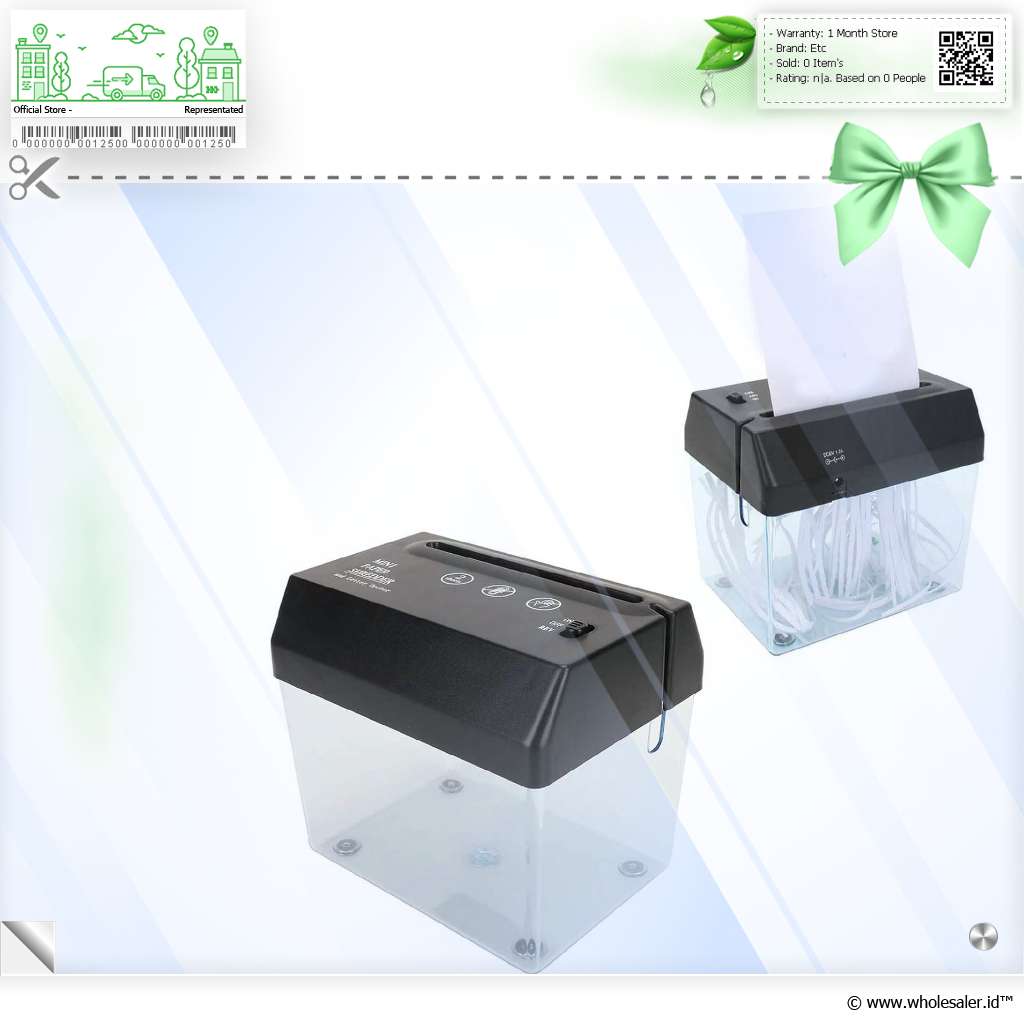 Hancurkan Dokumen dengan Mudah Mini paper shredder atau mesin penghancur kertas dirancang untuk menghancurkan dokumen dengan mudah dan cepat. Dengan kapasitas pemotongan yang optimal, Anda dapat menghancurkan kertas, kuitansi, atau dokumen penting lainnya menjadi potongan kecil yang tidak dapat direkonstruksi. Lindungi informasi pribadi atau rahasia bisnis Anda dengan aman. |
