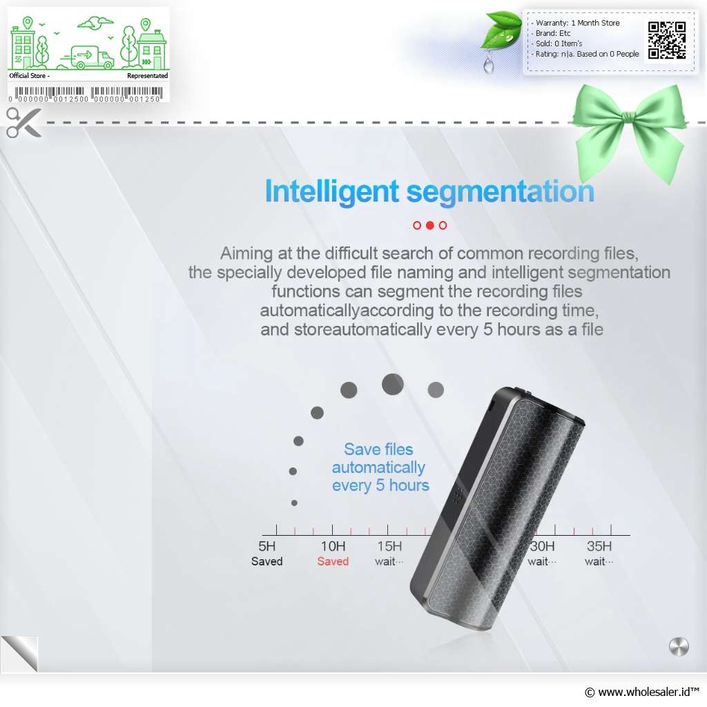 | Menangkap Suara Kualitas Tinggi Didukung sampling rate 48 KHz dan bitrate 192 Kbps, perekam suara ini mampu menangkap detail suara dengan kualitas tinggi. Cocok untuk rekaman percakapan, suara instrumen, ceramah, hingga kebutuhan dokumentasi yang membutuhkan kejernihan ekstra. |