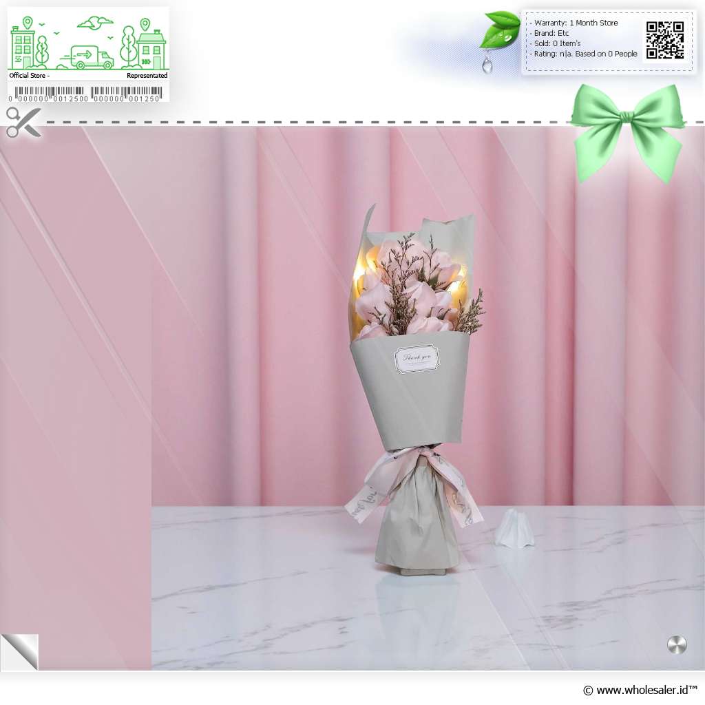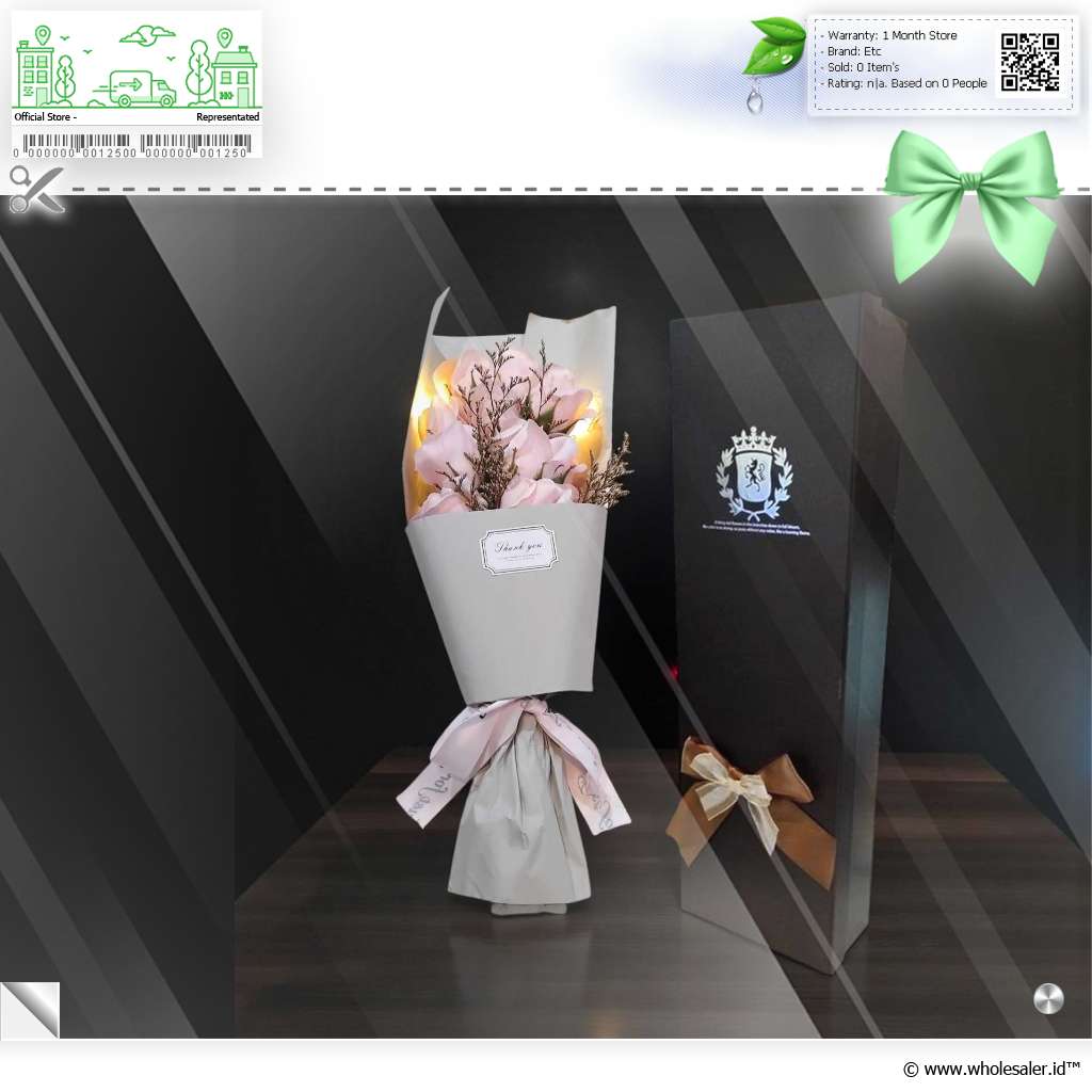 Buket bunga dekorasi merupakan hadiah tepat untuk orang terkasih. Kesan natural dan sentuhan romantisnya dapat Anda lihat dari cantiknya bunga artifisial terbuat dari sabun yang dibalut kertas buket. Visualnya sangat menawan dengan lampu LED string yang mengelilinginya.