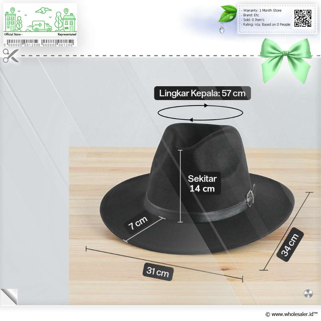 | Dimensi | : | Topi (Termasuk Visor) 31 x 34 cm Lebar Visor 7 cm Tinggi Topi Sekitar 14 cm Lingkar Kepala 57 cm (Varian Hitam) dan 58 cm (Varian Khaki) |