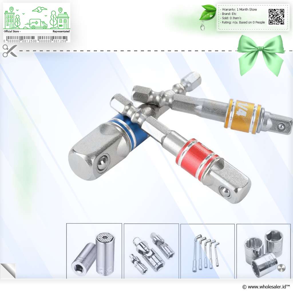 | Berbagai Ukuran Dalam paket pembelian, Anda memperoleh mata obeng adaptor dengan ukuran berbeda yaitu 1/4, 3/8, dan 1/2 Inch. Dengan begitu, Anda memiliki fleksibilitas untuk menggunakan berbagai jenis mata obeng dan aksesori. |