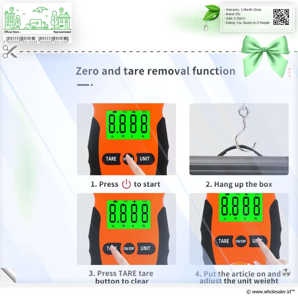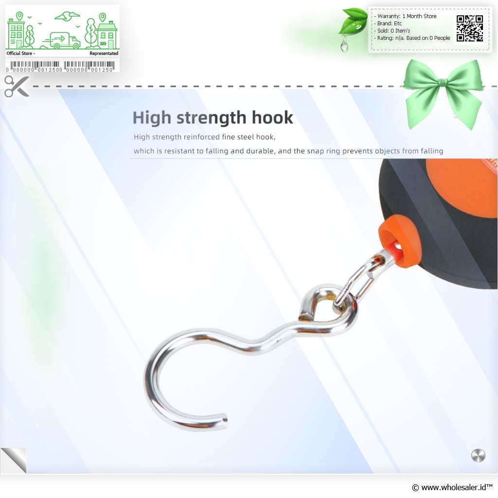 Multifungsi Selain digunakan untuk menimbang koper, timbangan ini dapat juga digunakan untuk mengangkat barang lain. Misalnya untuk mengangkat paket, daging, dan hasil panen. Seingga memungkinkan untuk digunakan di banyak situasi. |