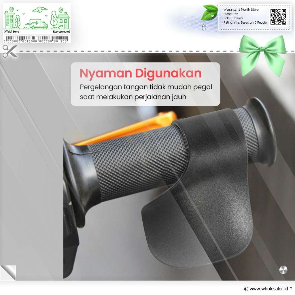 | Nyaman Digunakan Kenyamanan yang didapat adalah kinerja tangan saat melajukan gas tidak perlu bekerja maksimal. Karena dudukan gas ini dapat membantu melajukan motor secara konstan meskipun kerja tangan tidak begitu maksimal. |