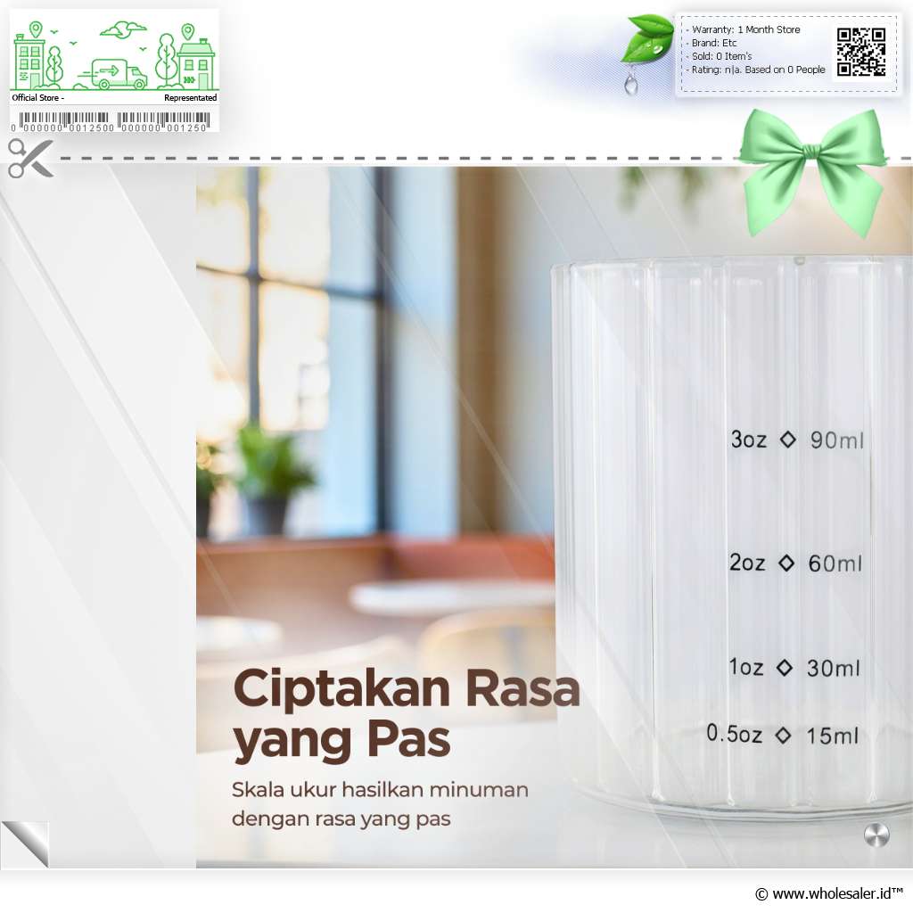 | Takaran Akurat Gelas takar ini hadir dengan kapasitas 90 ml yang memiliki indikator takaran berbentuk tulisan di permukaan gelas. Takaran yang dibuat sudah disesuaikan dengan akurat. |