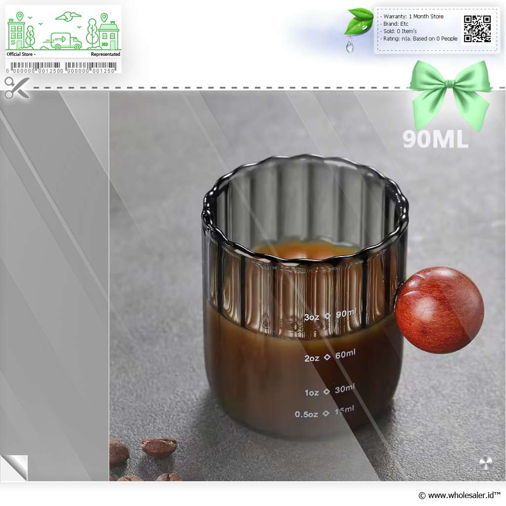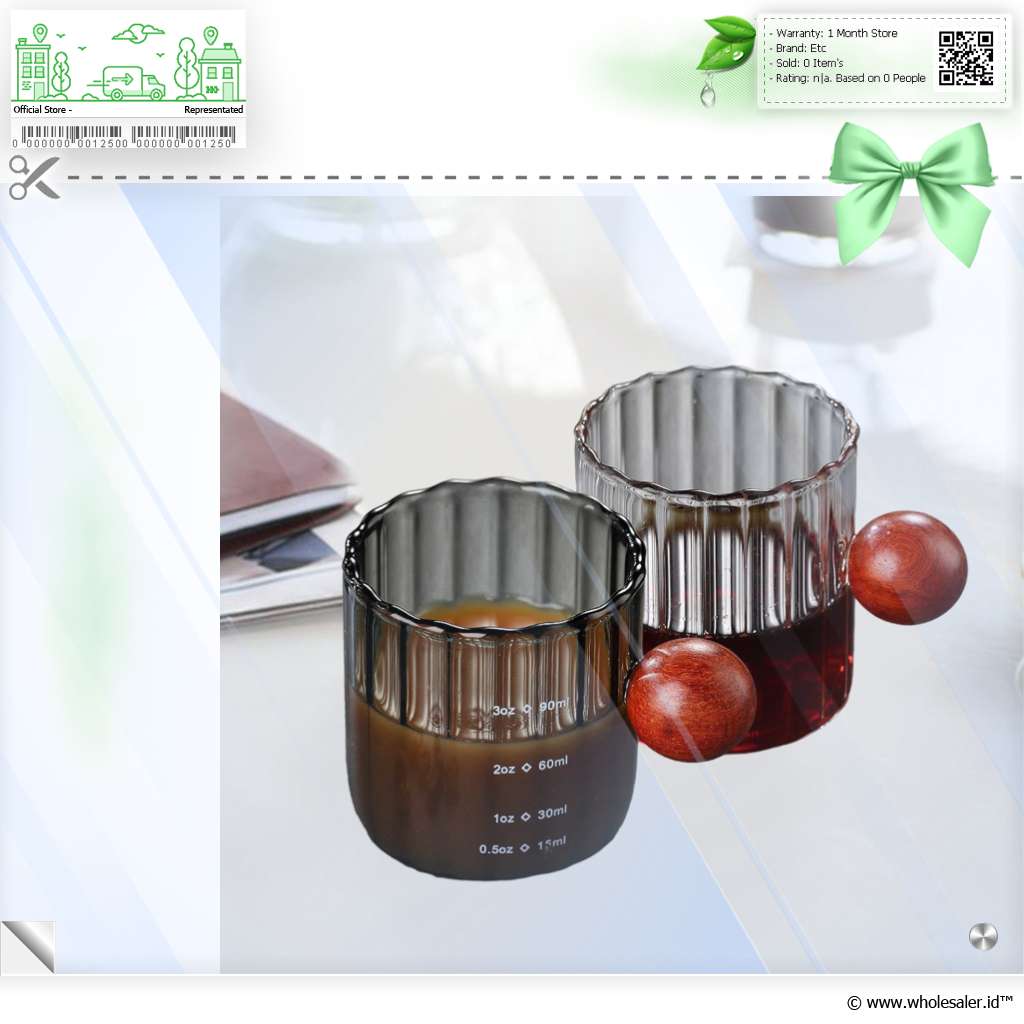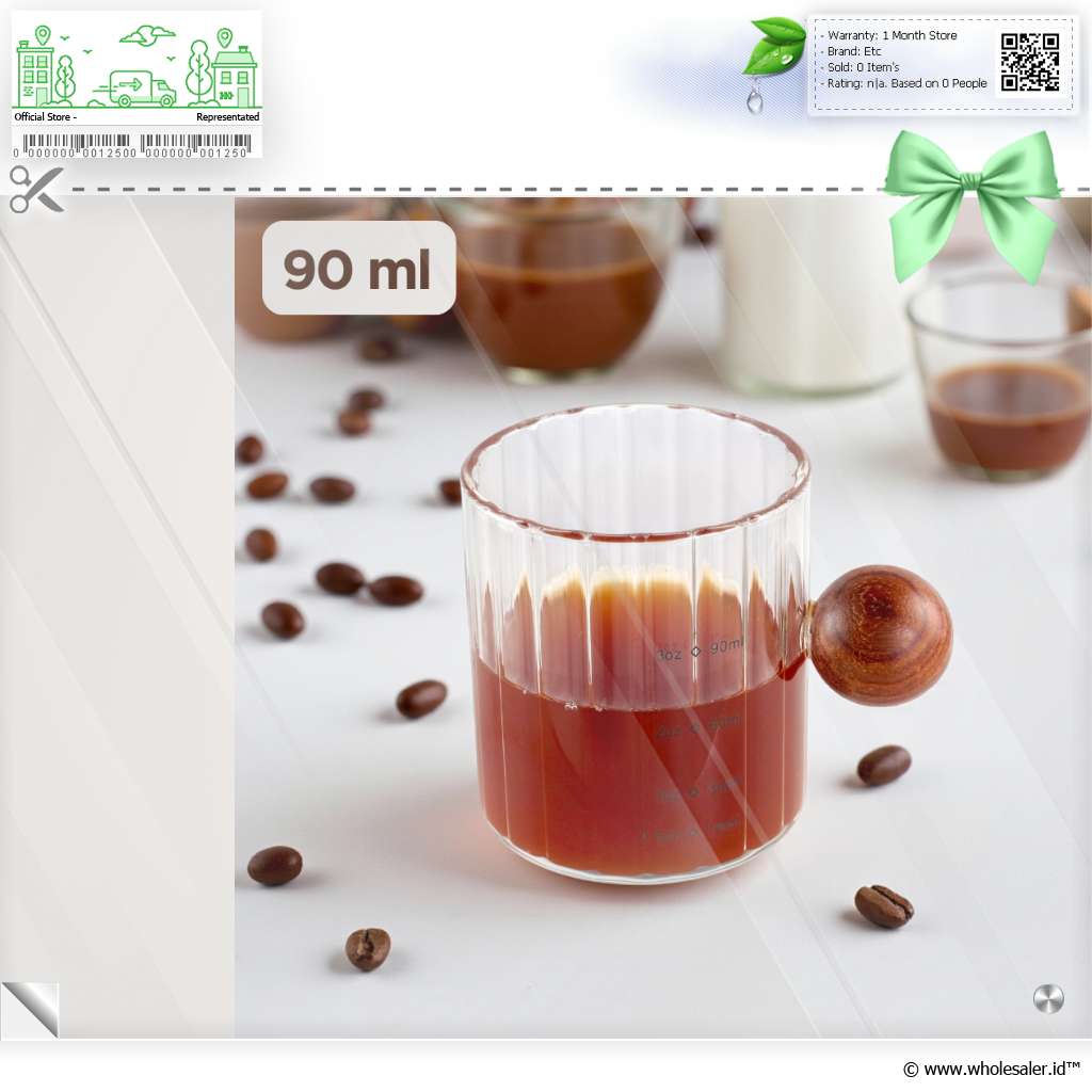 Informasi Produk KEMORELA Gelas Takar Kopi Measuring Wooden Round Beads Glass 90ml - KS13