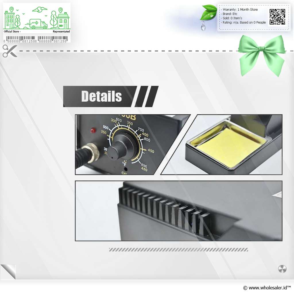 | Desain Ergonomis Solder station ini dilengkapi tempat holder besi yang kokoh untuk menjaga solder tetap aman saat tidak digunakan, serta busa pembersih tip untuk membersihkan ujung solder dari sisa timah. |