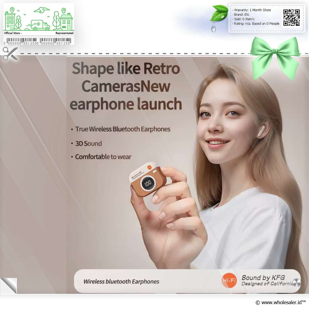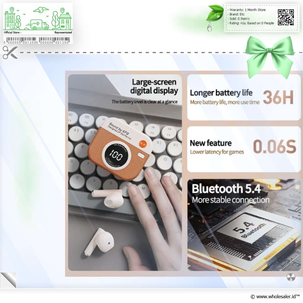 |  Desain Estetik  Tampilan charging case unik dan penuh gaya, meniru bentuk kamera retro. Estetika yang menawan ini tidak hanya berfungsi sebagai pelindung dan pengisi daya, tetapi juga menjadi aksesori fashion yang menarik perhatian. Dipadukan dengan layar kecil yang dapat menampilkan kapasitas baterai yang tersisa, semakin menambah kesan estetik. |