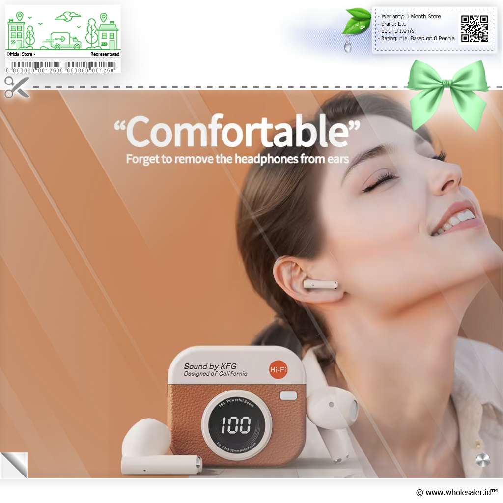 Nikmati pengalaman mendengarkan musik serba praktis dengan earphone bluetooth dari KFG. Mengusung desain in ear bertangkai, earphone ini berukuran kecil dan nyaman di telinga. Desain charging case yang unik berbentuk kamera retro, yang menambah kesan estektik. Display pada charging case memiliki tampilan keren yang menampilkan informasi kapasitas baterai charging case.
