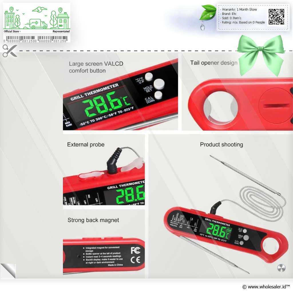 | Ketahanan Suhu Tinggi Memiliki ketahanan suhu tinggi, termometer makanan ini dapat mengukur suhu mulai dari -50-300 C atau -58-572 F. Cocok untuk Anda yang ingin memasak aneka hidangan dengan tingkat kematangan berbeda. |