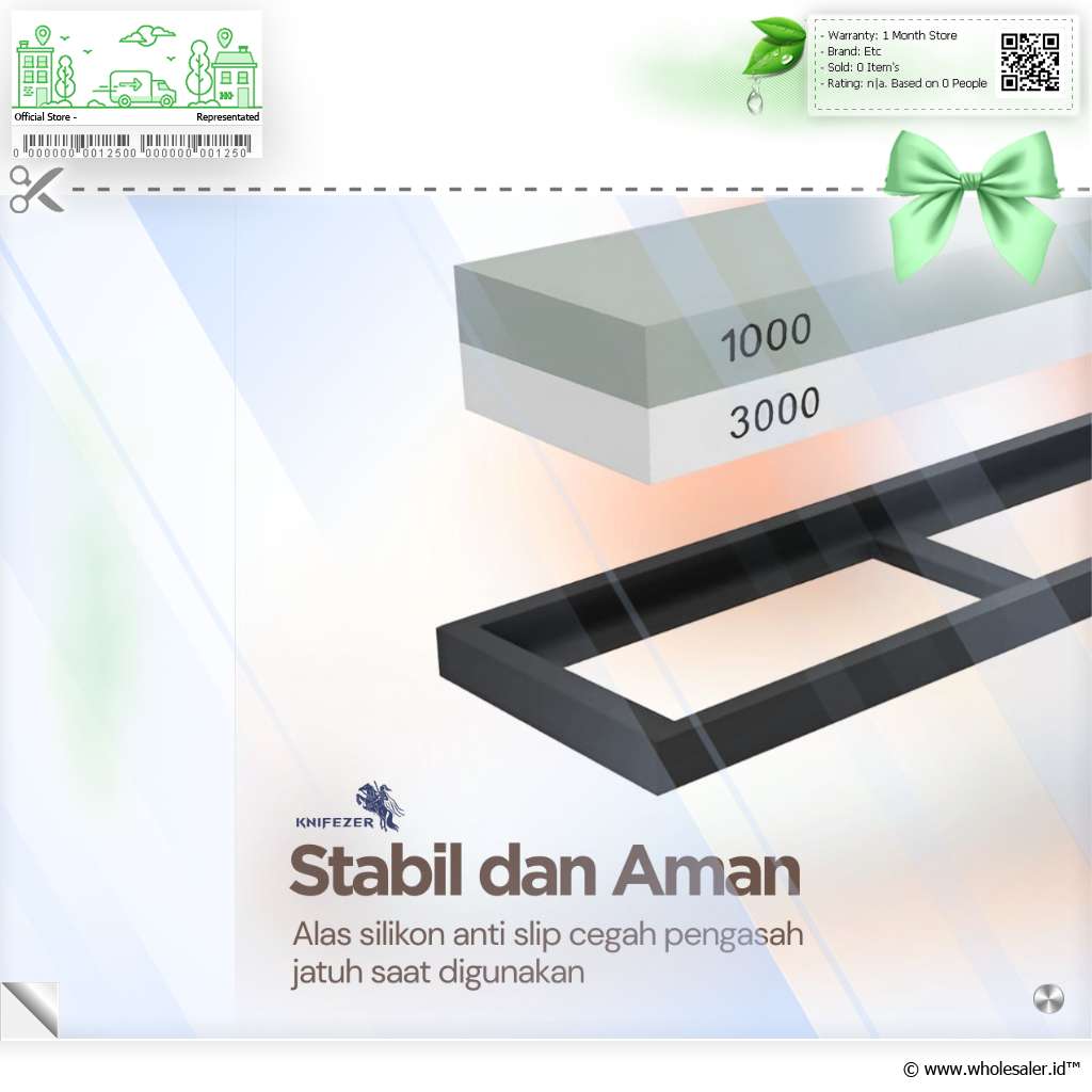 | Stabil dan Aman KNIFEZER membekali batu pengasah ini dengan alas silikon anti slip agar aman saat digunakan. Alas ini mencegah batu pengasah jatuh atau bergeser saat digunakan. |