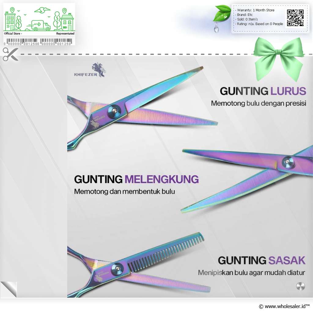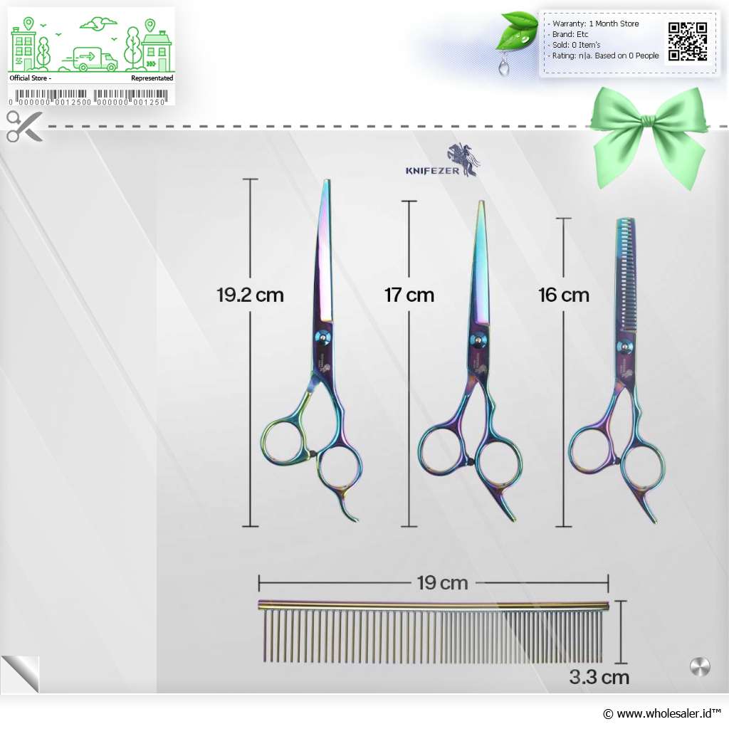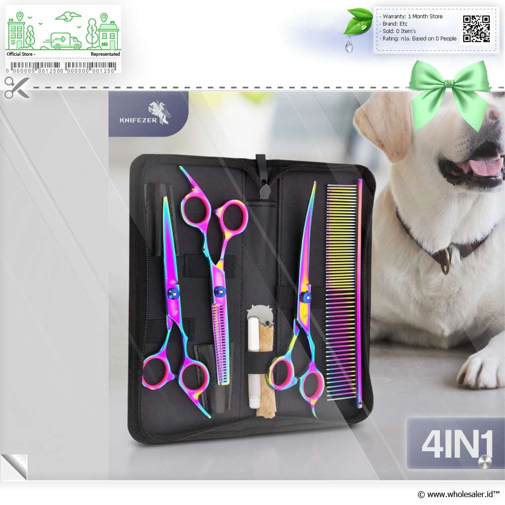 Informasi Produk KNIFEZER Set Gunting Grooming Bulu Hewan Peliharaan 4in1 - 62HRC