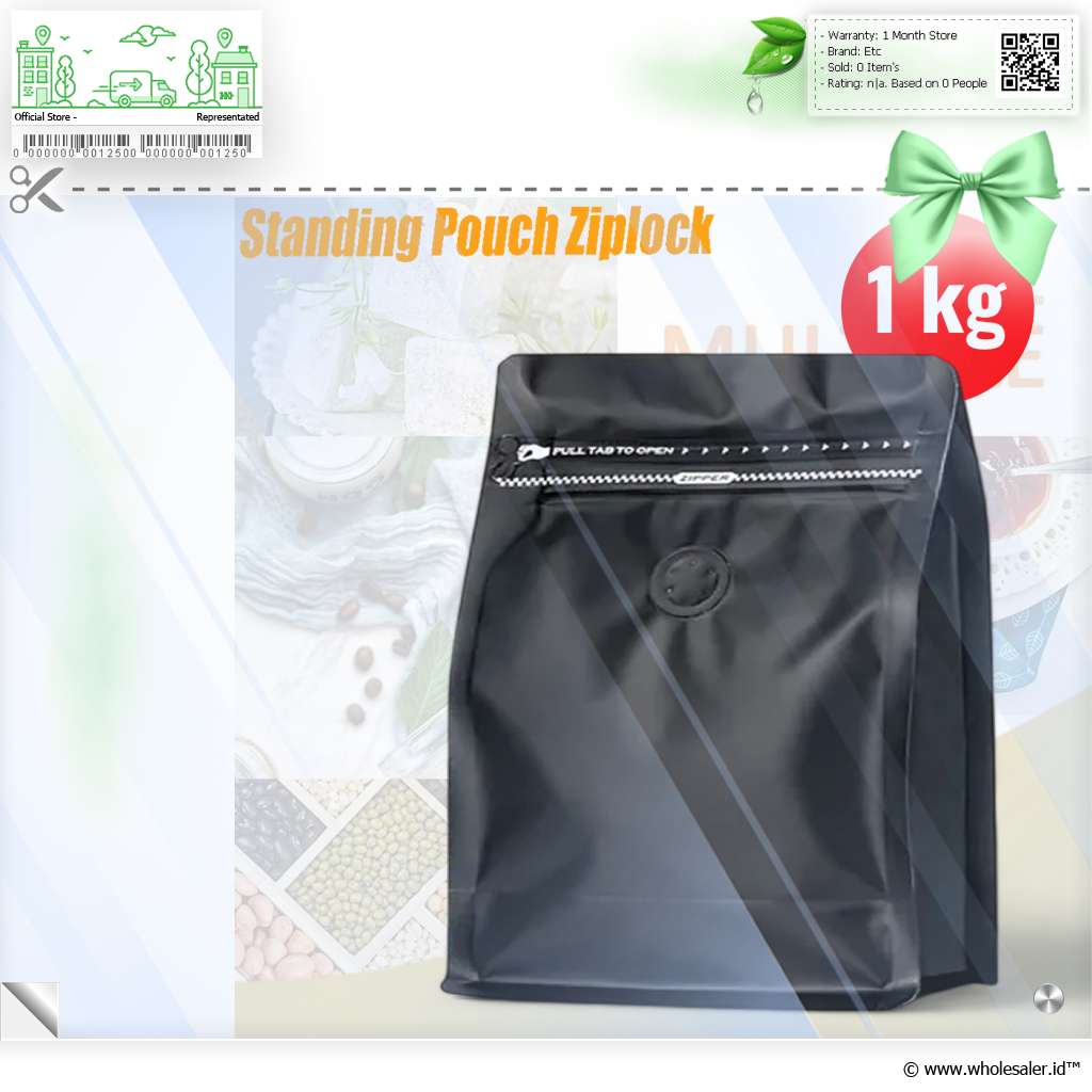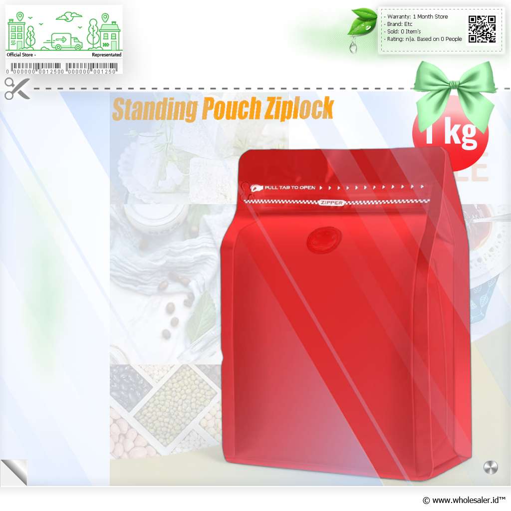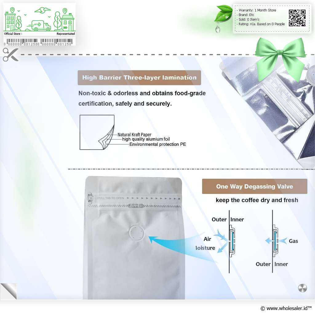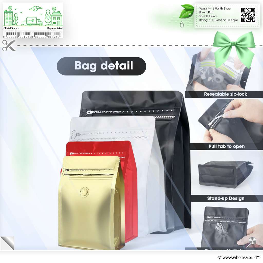Informasi Produk KOFE Kemasan Kopi Standing Pouch Ziplock Flat Bottom with Valve 10 PCS - KF-10
