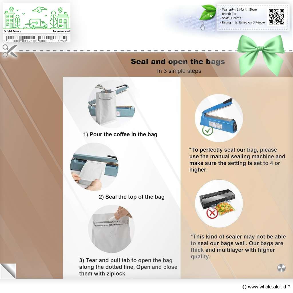 Multifungsi untuk Banyak Produk Selain untuk biji atau bubuk kopi, kemasan ini juga cocok untuk teh, rempah, cokelat bubuk, snack, atau produk herbal. Sifatnya yang tahan lama dan tampilannya yang modern membuatnya fleksibel digunakan untuk berbagai keperluan usaha. |