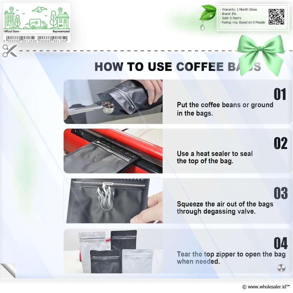| Multifungsi untuk Banyak Produk Selain untuk biji atau bubuk kopi, kemasan ini juga cocok untuk teh, rempah, cokelat bubuk, snack, atau produk herbal. Sifatnya yang tahan lama dan tampilannya yang modern membuatnya fleksibel digunakan untuk berbagai keperluan usaha. |