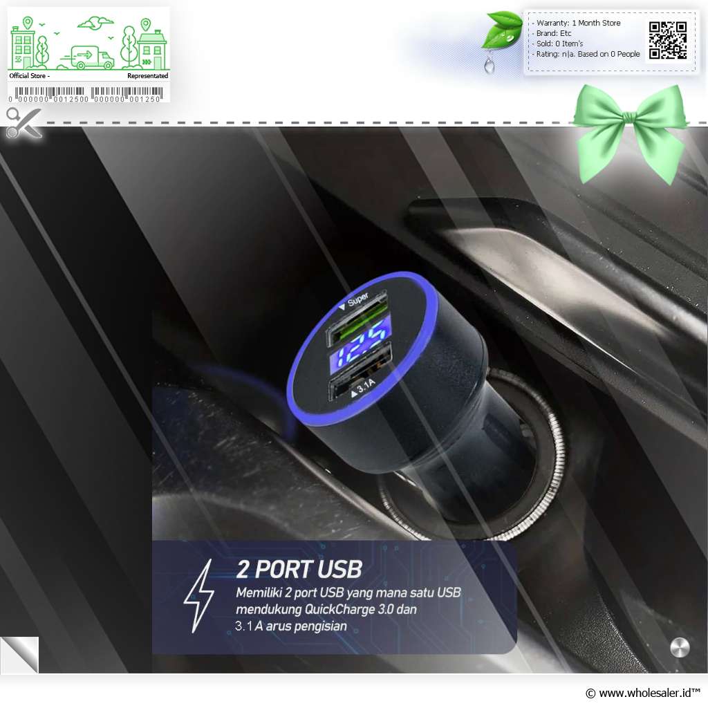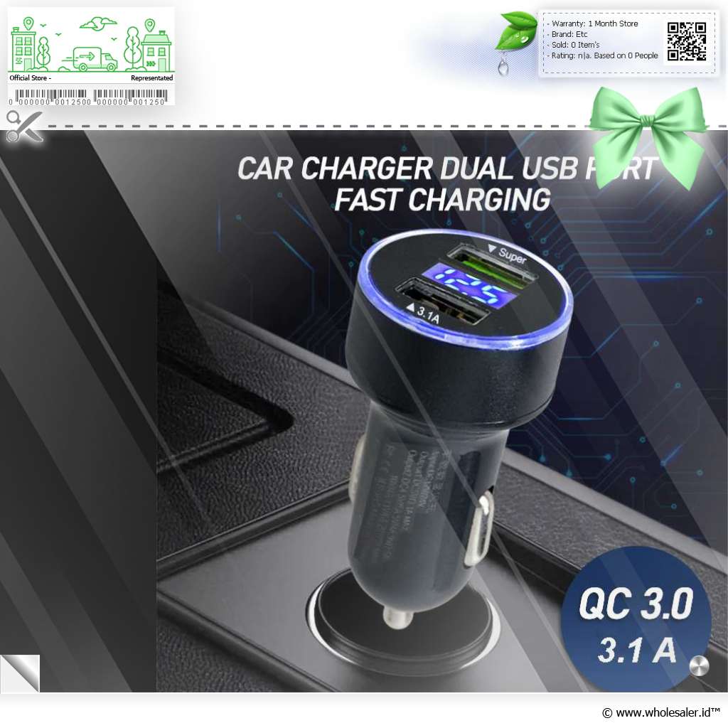 - 1 x Leeioo Car Charger Mobil Fast Charging QC 3.0 LED Dual USB Port 3.1A - LE001