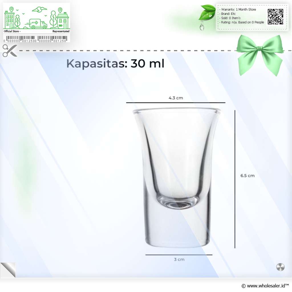 |    Dimensi Ideal   Gelas ini memiliki ukuran yang sangat ideal yang berkapasitas 30 ml. Dengan diameter atas 4.3 cm, tinggi 6.5 cm, dan diameter bawah 3 cm. Desain yang ringkas ini memastikan gelas nyaman digenggam, mudah ditempatkan di meja atau rak, dan tetap terlihat proporsional ketika dihidangkan.   |