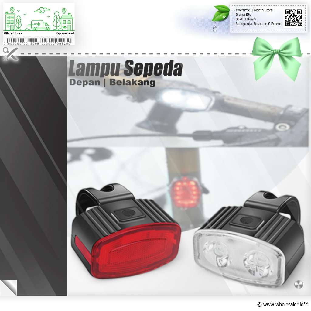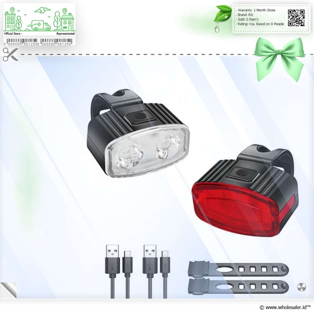 | Lain-lain | : | Waterproof IPX4 Mode Lampu Depan Strong, Medium, Low Mode Lampu Belakang Strong, Medium, Low, Fast Blinking, Warning Blinking, dan Slow Blinking Waktu Penggunaan Sekitar 3 Jam |