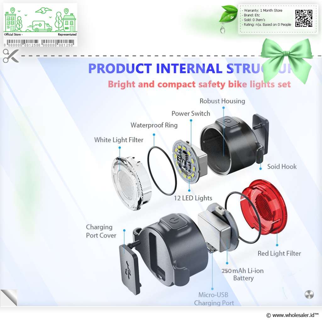 Informasi Produk LIDS Lampu Sepeda Depan Belakang LED Rechargeable Waterproof 1 Set - XA-325