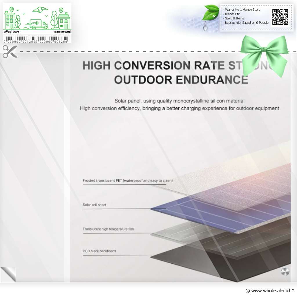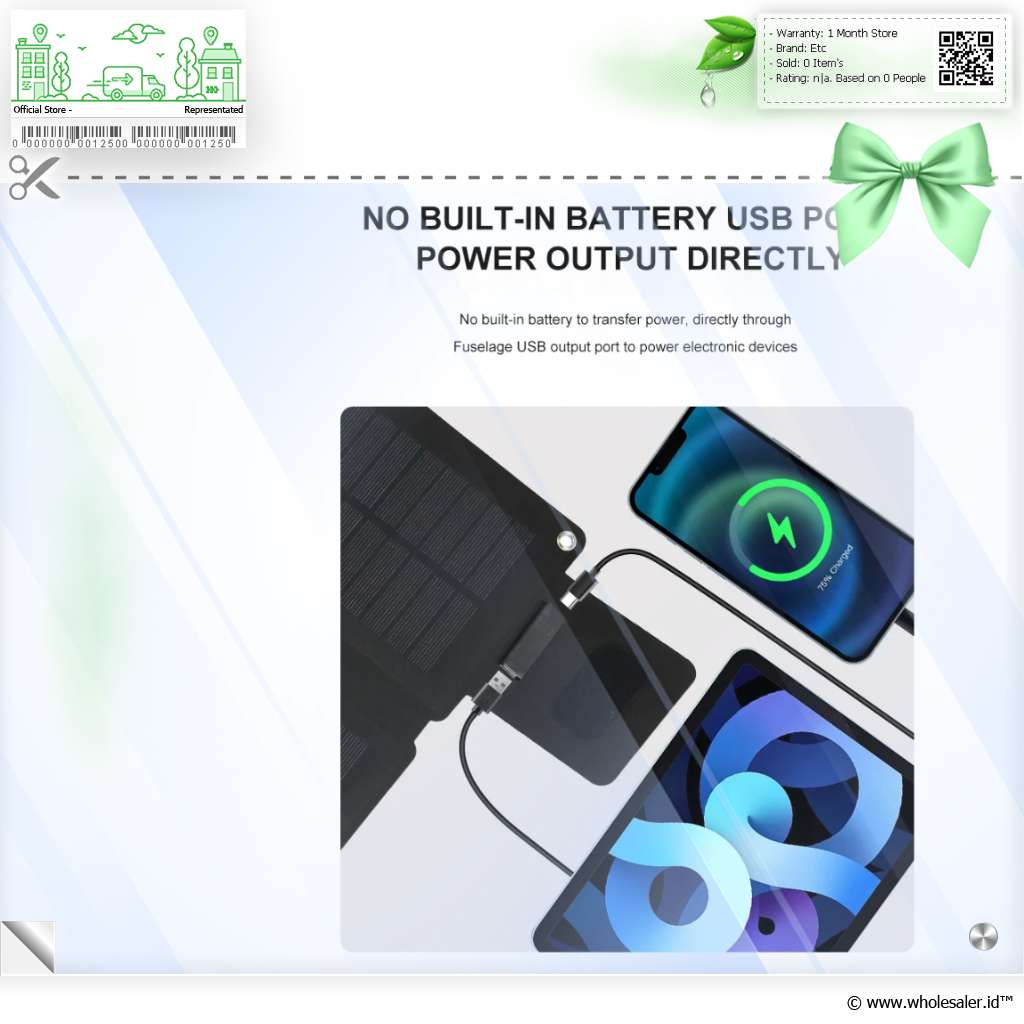 Output Stabil dan Aman Menghasilkan daya 12 W yang stabil, solar panel ini cocok untuk mengisi smartphone, tablet, kamera, dan perangkat elektronik portable lainnya. Sistem proteksi internal mencegah overcharge dan arus tidak stabil, sehingga perangkat Anda tetap aman dan daya tahan baterainya lebih terjaga. |