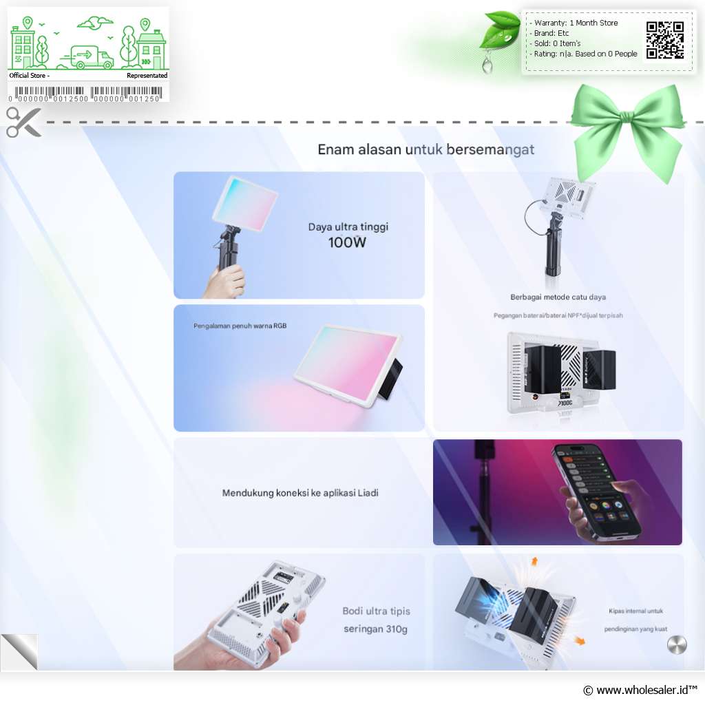 Warna Dinamis dan Efek Kreatif Dengan dukungan mode warna penuh 360 HSI dan CCT 2500K-9900K, kamu bisa menciptakan suasana pencahayaan yang dramatis, hangat, atau futuristik sesuai kebutuhan. Tersedia 21+3 efek pencahayaan sinematik yang siap memperkaya konten video, Vlog, atau siaran langsung. |