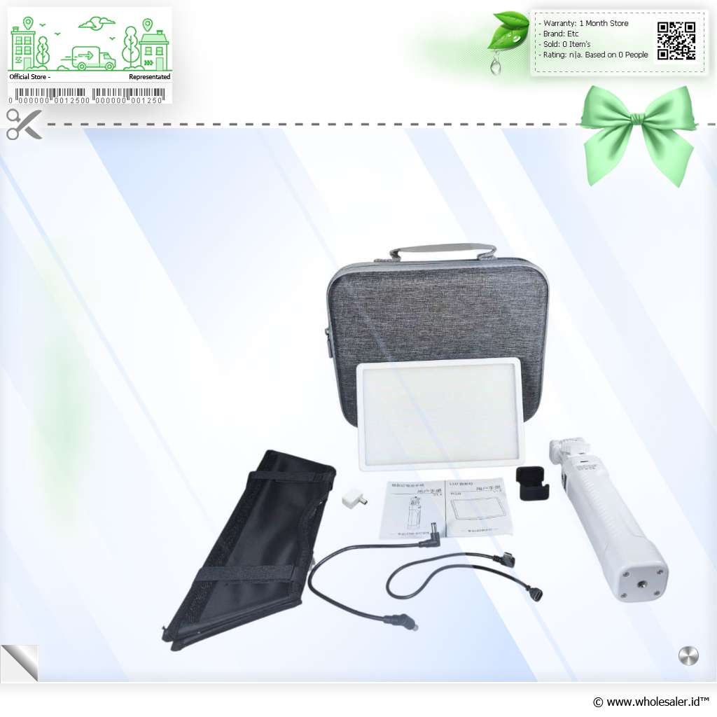Dimensi | : | LED Light 205 x 34.5 x 135 mm Grip Baterai 41 x 47 x 235 mm Soft Box 30 x 9.5 x 21.5 cm Tas Penyimpanan 28 x 23 x 7.5 cm |