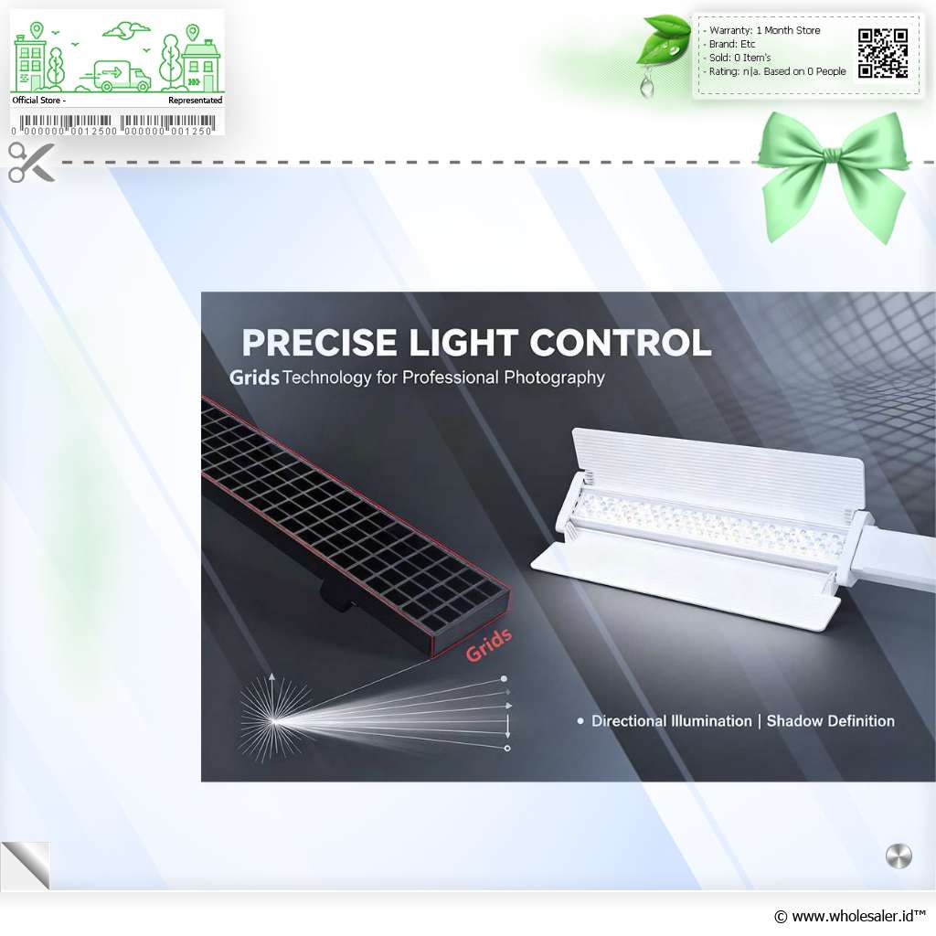 | Cahaya Lebih Terarah Lampu studio tube light ini dilengkapi dengan sayap di sisi lampu, cahaya bisa difokuskan hanya ke area tertentu, sehingga tidak menyebar berlebihan. Ini juga memudahkan pengaturan kontras dan penciptaan bayangan dramatis. |