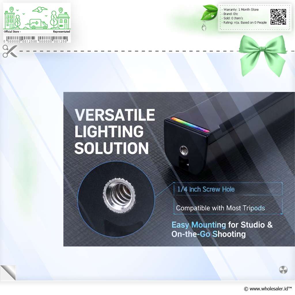 | Lain-lain | : | Iluminasi Cahaya 5480 Lux @ 0.5 M pada 9900 K Akurasi Cahaya CRI 95 Brightness 0-100% (Adjustable) Hue 0-360 HSI (36000) Saturation 0-100% (Adjustable) Sudut Pencahayaan 45 Bukaan Barndoor 120 (Adjustable) Kontrol Aplikasi Support (Via Bluetooth) Jarak Operasi Remot Kontrol 60 M Jumlah Preset Efek 24 Preset |