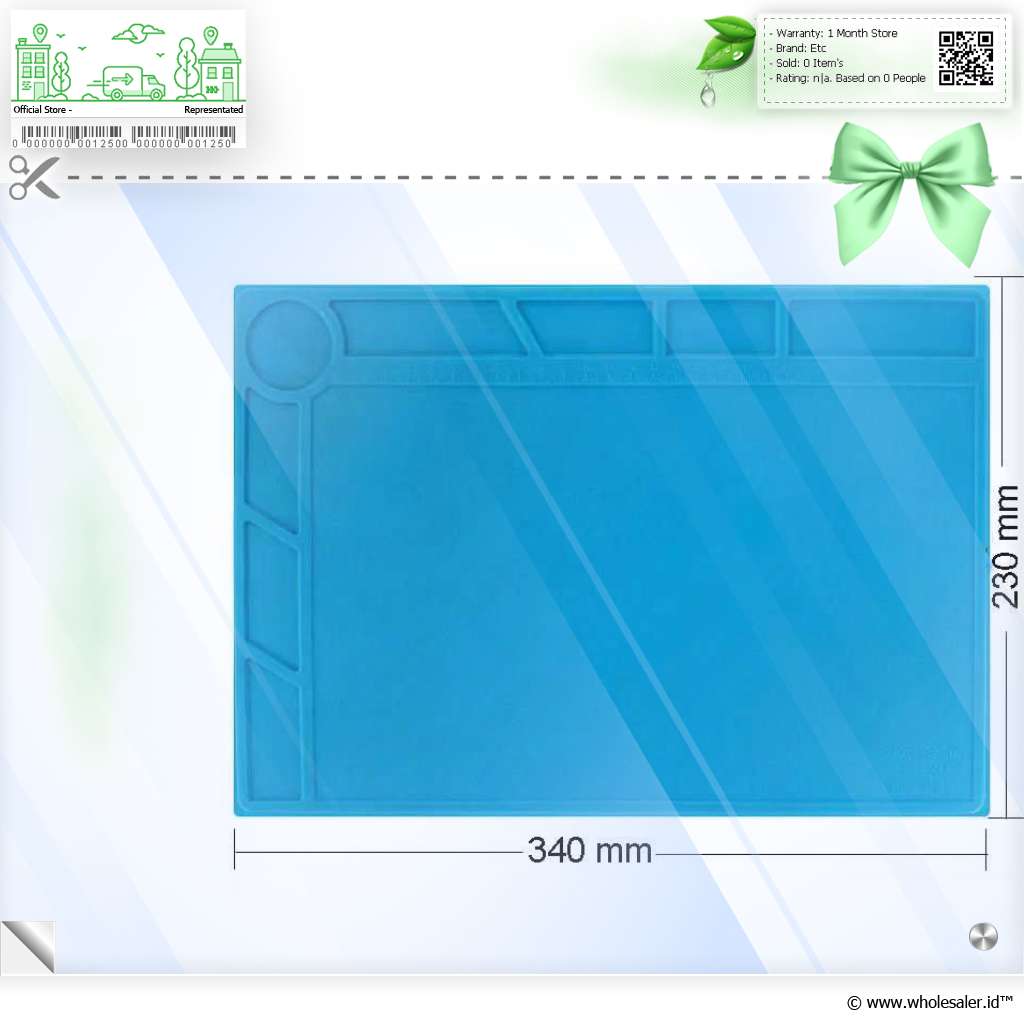 | Luas Cukup Untuk Matras Kerja Dengan dimensi 340 x 230 mm, matras ini menyediakan area kerja yang cukup luas untuk menaruh komponen, alat, dan perangkat elektronik kecil. |