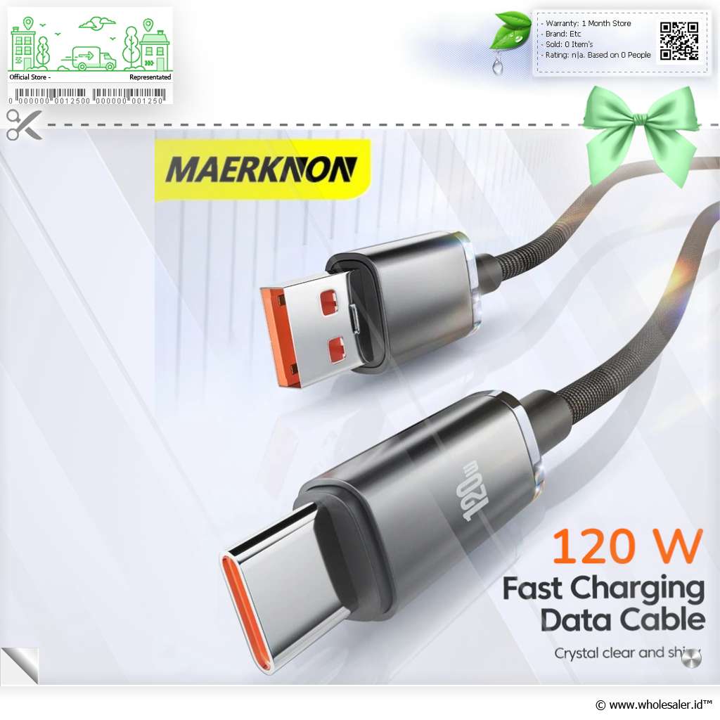 Informasi Produk MAERKNON Kabel Data USB Type C Fast Charging 120W 6A 1.5M - MK150
