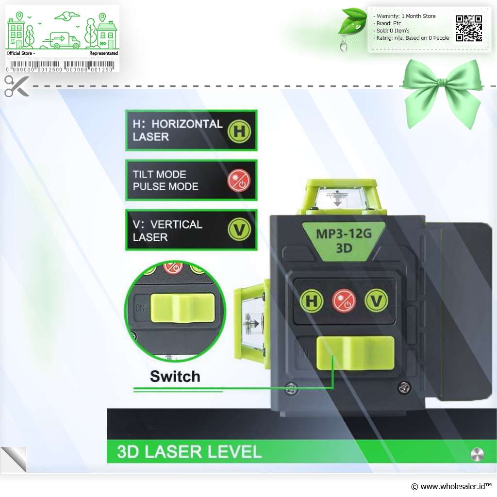 Laser level adalah alat yang membantu memastikan segala sesuatu dipasang dengan lurus dan rapi. Alat ini memproyeksikan garis cahaya lurus ke dinding atau permukaan lainnya, sehingga memudahkan untuk menyejajarkan benda-benda seperti rak, ubin, atau lukisan. Laser level dari MAXLIGHT dibekali dengan 12 garis level 3D, alarm peringatan, baterai yang tahan lama, remot kontrol, dan material yang kokoh dan tahan banting.