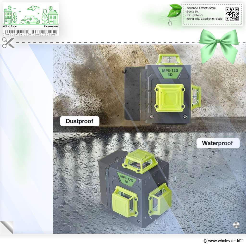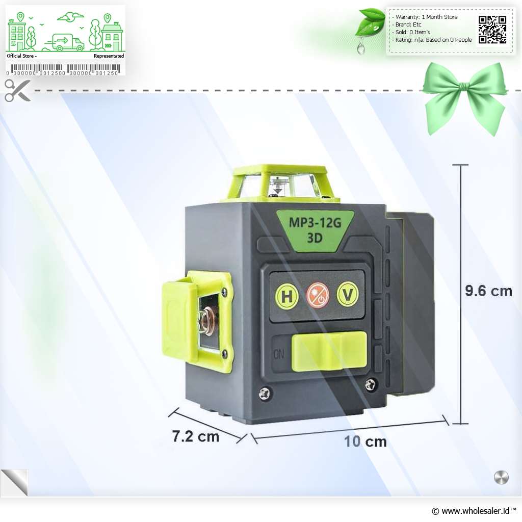 Informasi Produk MAXLIGHT Laser Level Self Leveling 3D 360 Degree 12 Line 520nm 2400mAh - MP3-12G