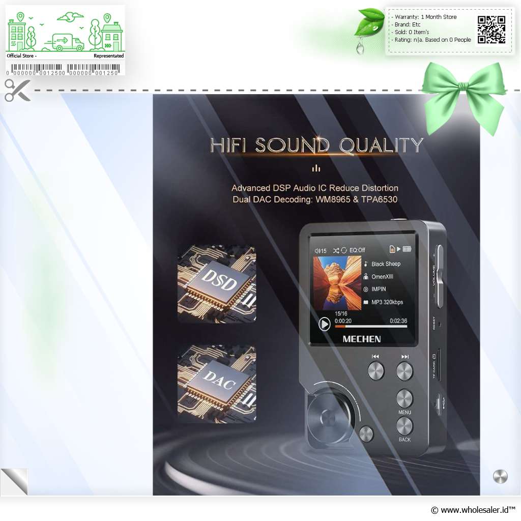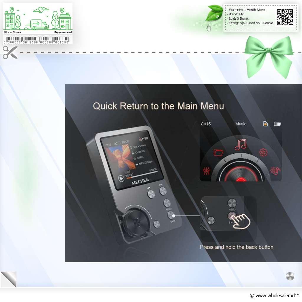 Nikmati pengalaman mendengarkan musik terbaik dengan MP3 digital audio player dari MECHEN. Mampu memutar musik dengan kualitas suara yang jernih. Didukung layar berwarna dengan ukuran 2 Inch. Menggunakan memori dengan external 64 GB yang mampu menyimpan ribuan musik.
